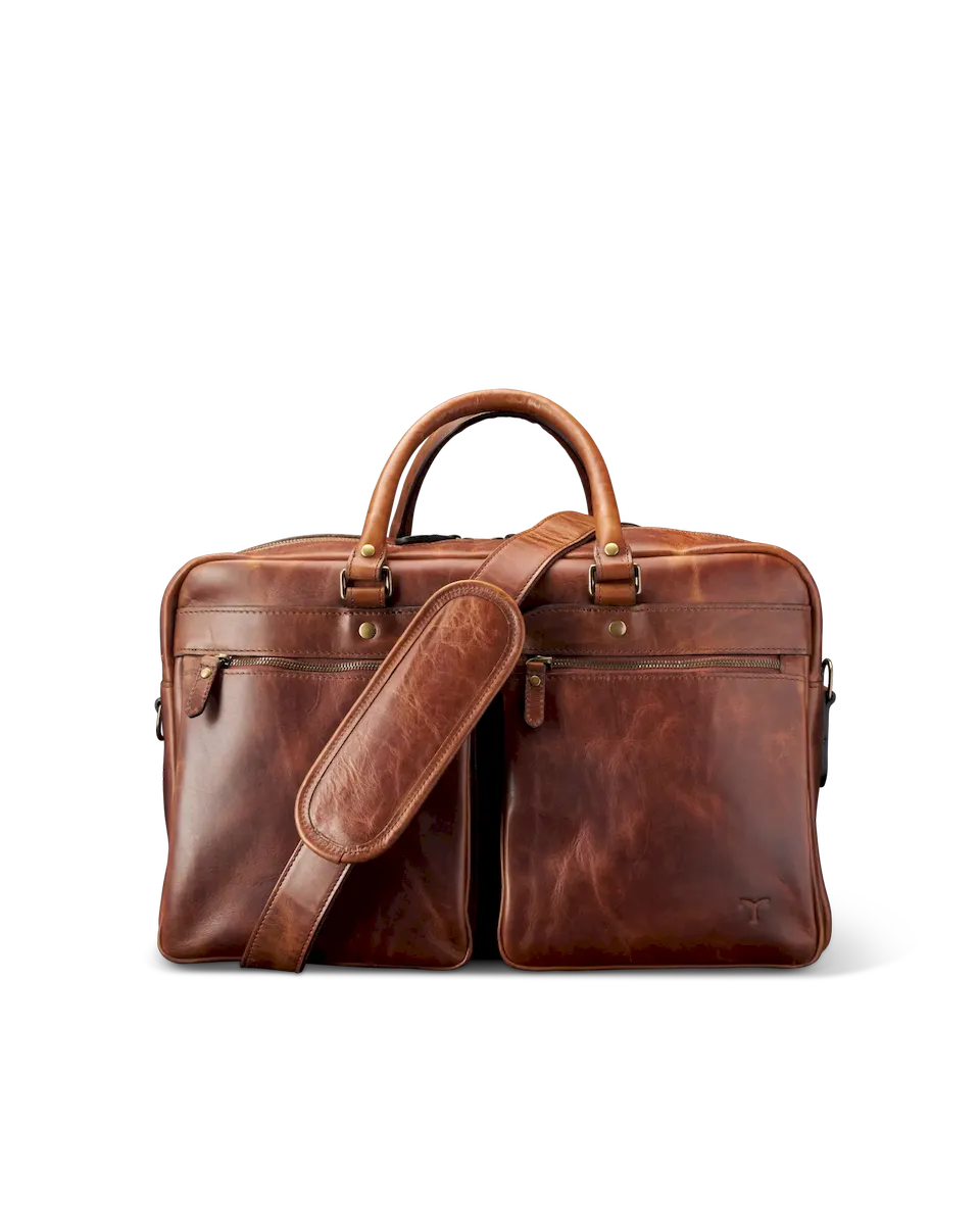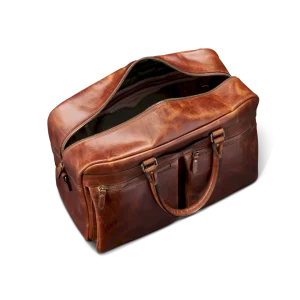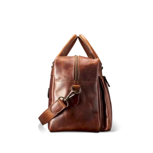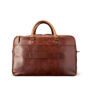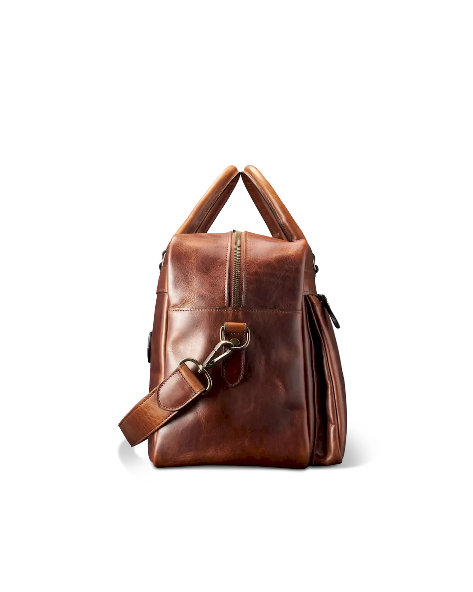 Handsome enough for the office and carry-on compliant, the Bartlett Carrier Duffle is the perfect short-trip travel bag. Made with our beautiful, natural grain Bartlett leather, this bag has a pull-up effect that will ensure it ages and patinas beautifully over time. Solid brass hardware, UCAN zippers, and a sturdy, duck cotton canvas lining make it rugged enough for any frequent flyer, and front exterior zip and slip pockets provide secure, yet easy access to your essentials and laptop. The interior will keep you organized with a zipper pocket, slip pockets, and key clip. And when you’re ready to head out, its sturdy grab handles, removable, adjustable shoulder strap, and luggage trolley strap provide multiple carry options. If you travel for work, this is the bag for you.