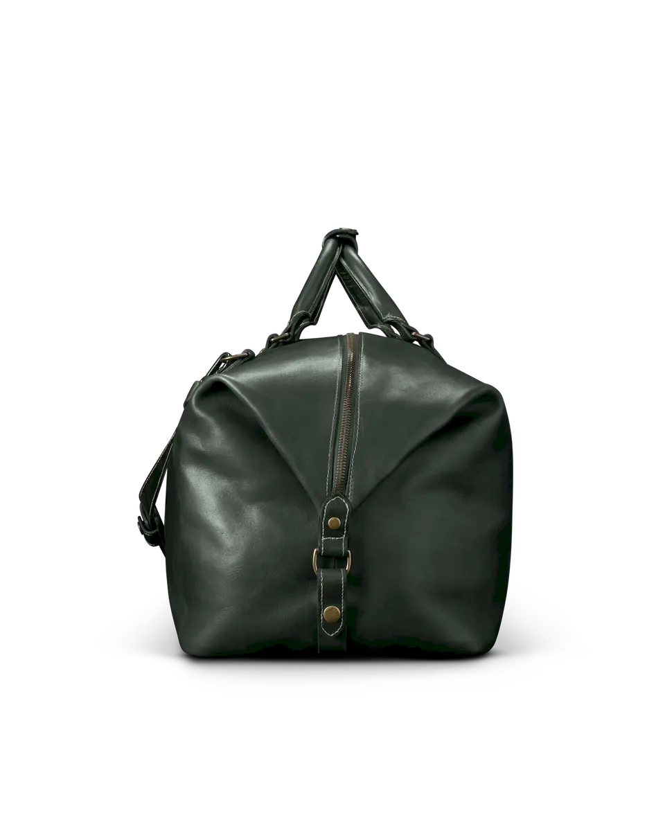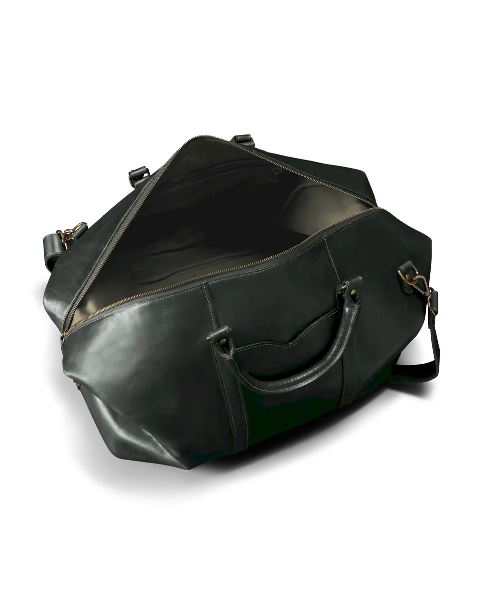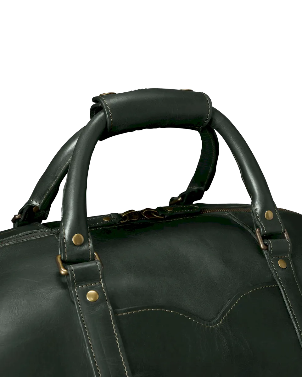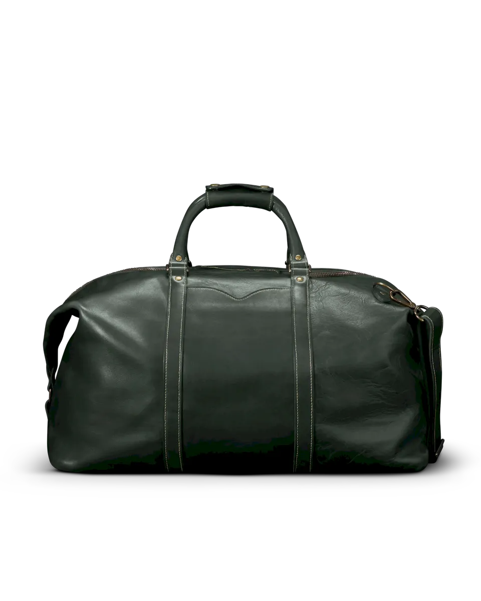 Designed for those who demand both style and substance, the Bartlett Large Weekender is built to withstand a lifetime of travel. Crafted from 100% natural grain cowhide, it showcases a rich depth of color and natural patina that deepens beautifully over time. This rugged leather, chosen for its durability and character, features a subtle pull-up effect, adding a unique dimension to its finish. Every detail of this heirloom-quality bag is designed for function and built to last. Reinforced with solid brass hardware, it features a premium two-way metal zipper for effortless access to the main compartment. The interior is lined with sturdy, water-resistant duck canvas—ensuring protection against the elements—while multiple pockets, including exterior front and rear slip pockets, interior zipper and slip pockets, and an interior key clip, keep essentials organized.