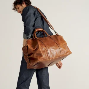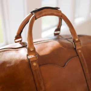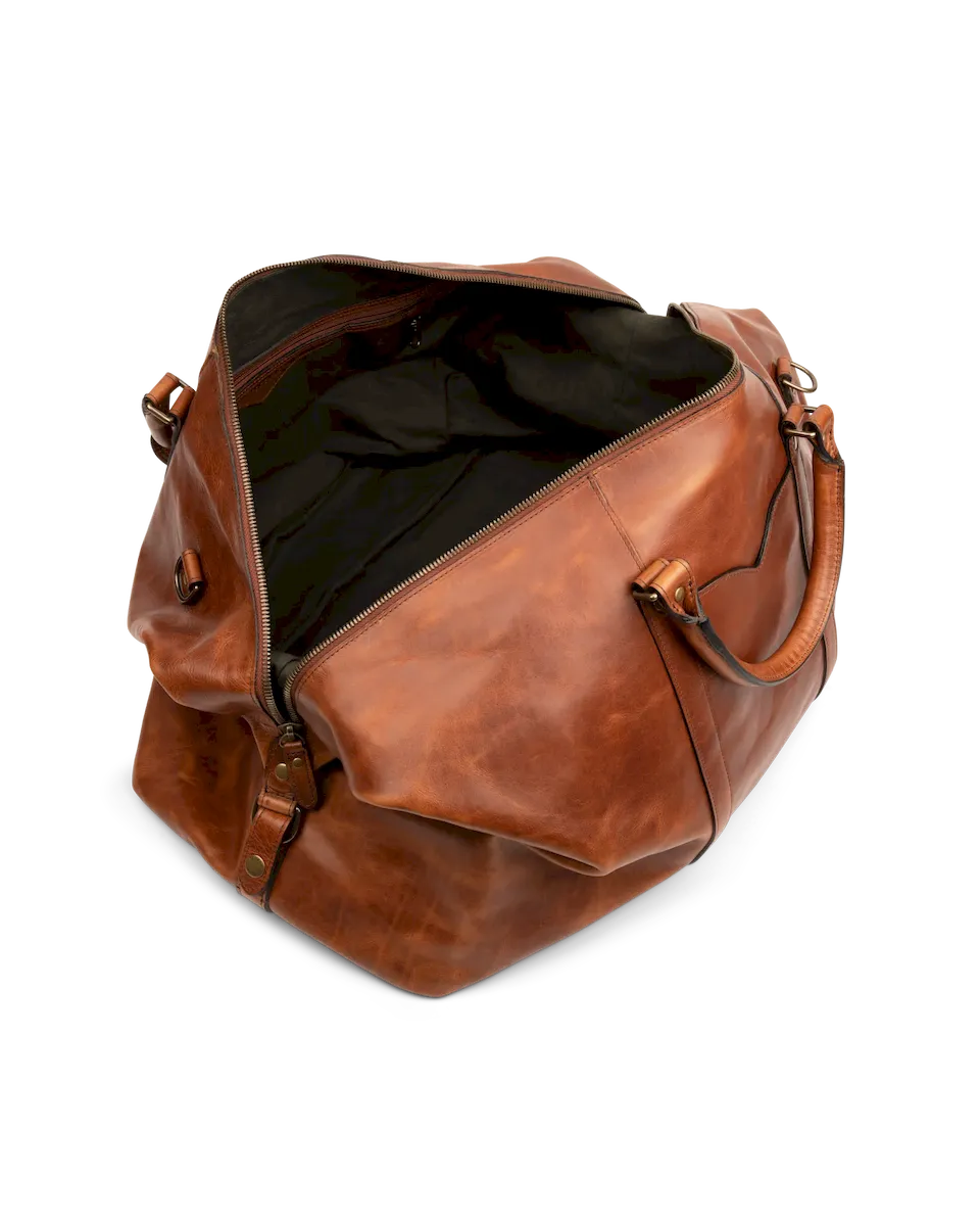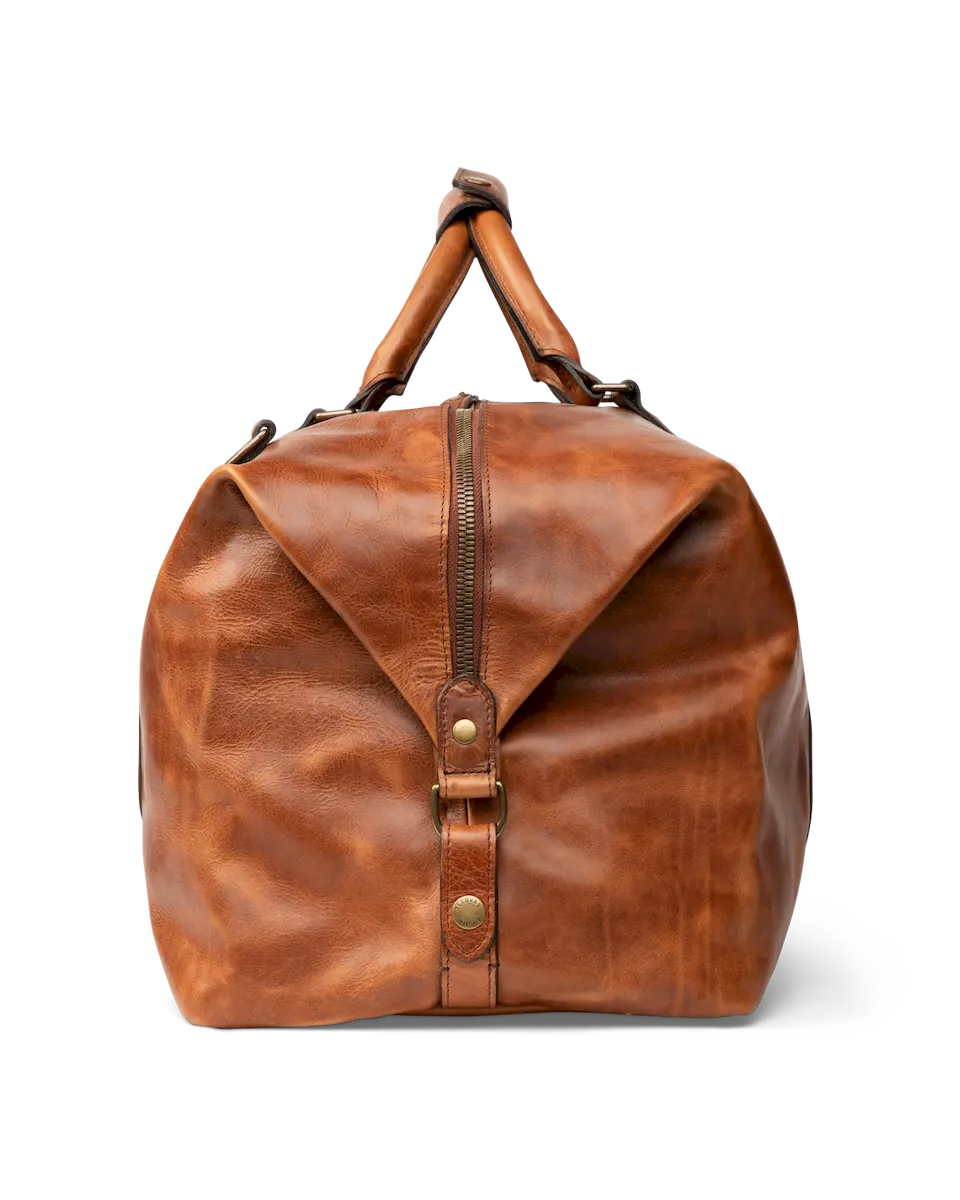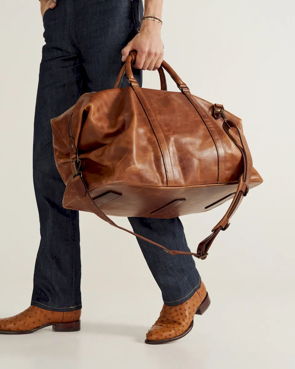 Designed for those who demand both style and substance, the Bartlett Large Weekender is built to withstand a lifetime of travel. Crafted from 100% natural grain cowhide, it showcases a rich depth of color and natural patina that deepens beautifully over time. This rugged leather, chosen for its durability and character, features a subtle pull-up effect, adding a unique dimension to its finish. Every detail of this heirloom-quality bag is designed for function and built to last. Reinforced with solid brass hardware, it features a premium two-way metal zipper for effortless access to the main compartment. The interior is lined with sturdy, water-resistant duck canvas—ensuring protection against the elements—while multiple pockets, including exterior front and rear slip pockets, interior zipper and slip pockets, and an interior key clip, keep essentials organized.