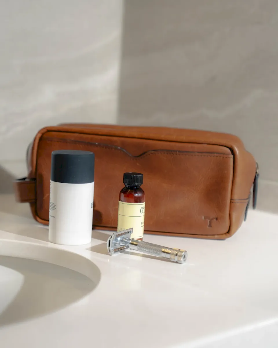 Crafted from natural grain cowhide leather, the Bartlett Travel Kit is designed for durability, and specifically selected to develop a stunning patina over time. A premium UCAN metal zipper offers effortless access, while interior zip and slip pockets keep essentials organized. The water-repellent Cordura nylon lining protects against moisture, ensuring longevity. Signature Flying-T debossed details and a sturdy side grab handle complete this heirloom-worthy essential—one that only gets better with every adventure.