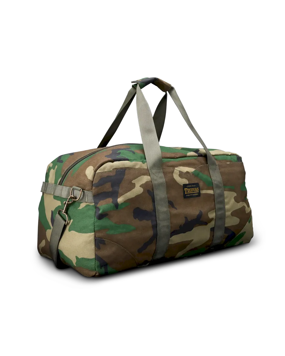 Every bag goes through trial by travel and the Canyon Duffle Bag is one to take the inevitable bumps, tosses, and splashes in stride. Made with water-resistant, tough 100% Cordura™ nylon with a camo-lined interior, military-grade nylon webbing straps and handles, a detachable shoulder strap with removable padded shoulder guard, UCAN zippers, and pockets aplenty — it’s the complete package for off the beaten path and business travel alike.