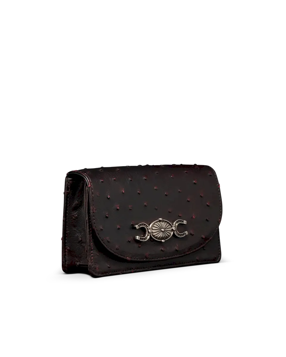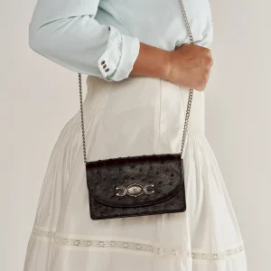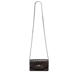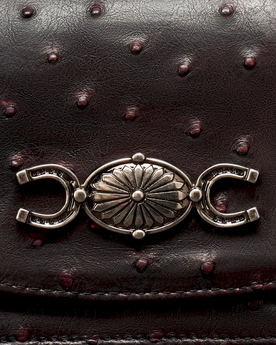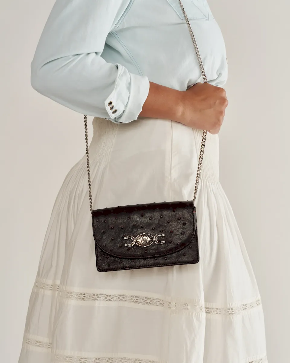 A compact statement piece with vintage character and modern ease, The Concho Chain Crossbody features a bold, custom concho and horseshoe medallion, paired with a sleek, minimal silhouette. With just enough room for your essentials and a removable chain strap, it’s your go-to for understated polish with a nod to classic Americana.