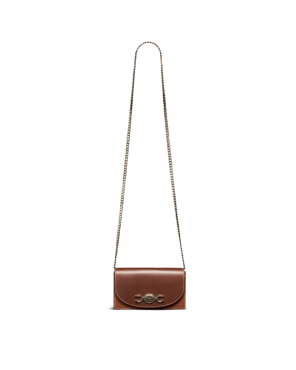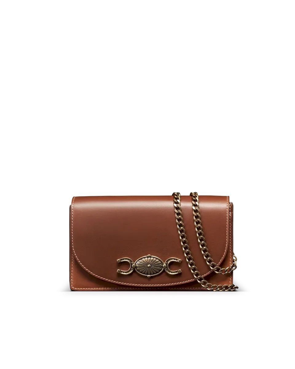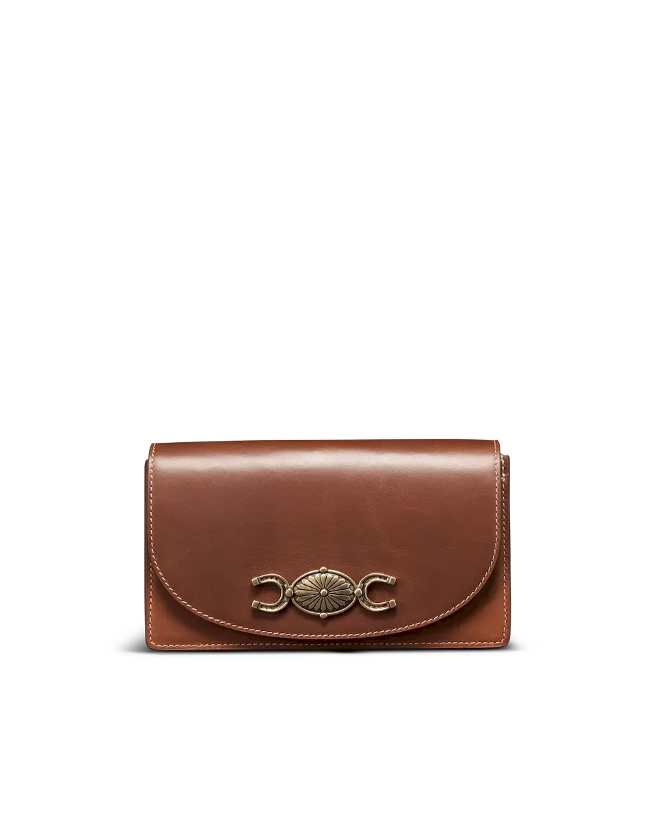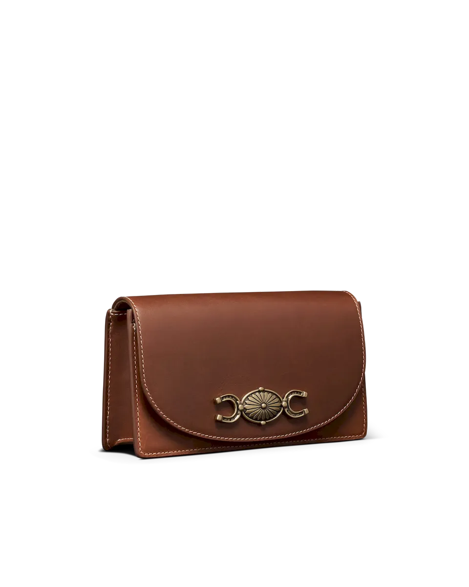 A compact statement piece with vintage character and modern ease, The Concho Chain Crossbody features a bold, custom concho and horseshoe medallion, paired with a sleek, minimal silhouette. With just enough room for your essentials and a removable chain strap, it’s your go-to for understated polish with a nod to classic Americana.
