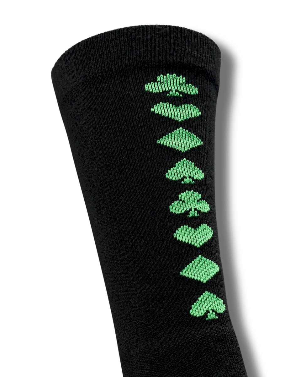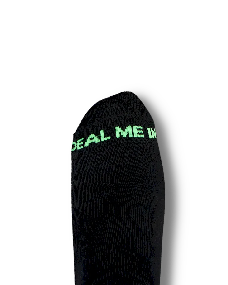 We took our fan-favorite Mid-Calf Boot Socks and gave them a bold Gamblers twist. Featuring “Deal Me In” across the toes and Gamblers Green card suit symbols running down the back, plus a nod to Tecovas on the sole. Built to breathe in all weather and stay up without the slip, they’re perfect for ropers, zips, and anything in our women’s lineup too. Made in the U.S.A.