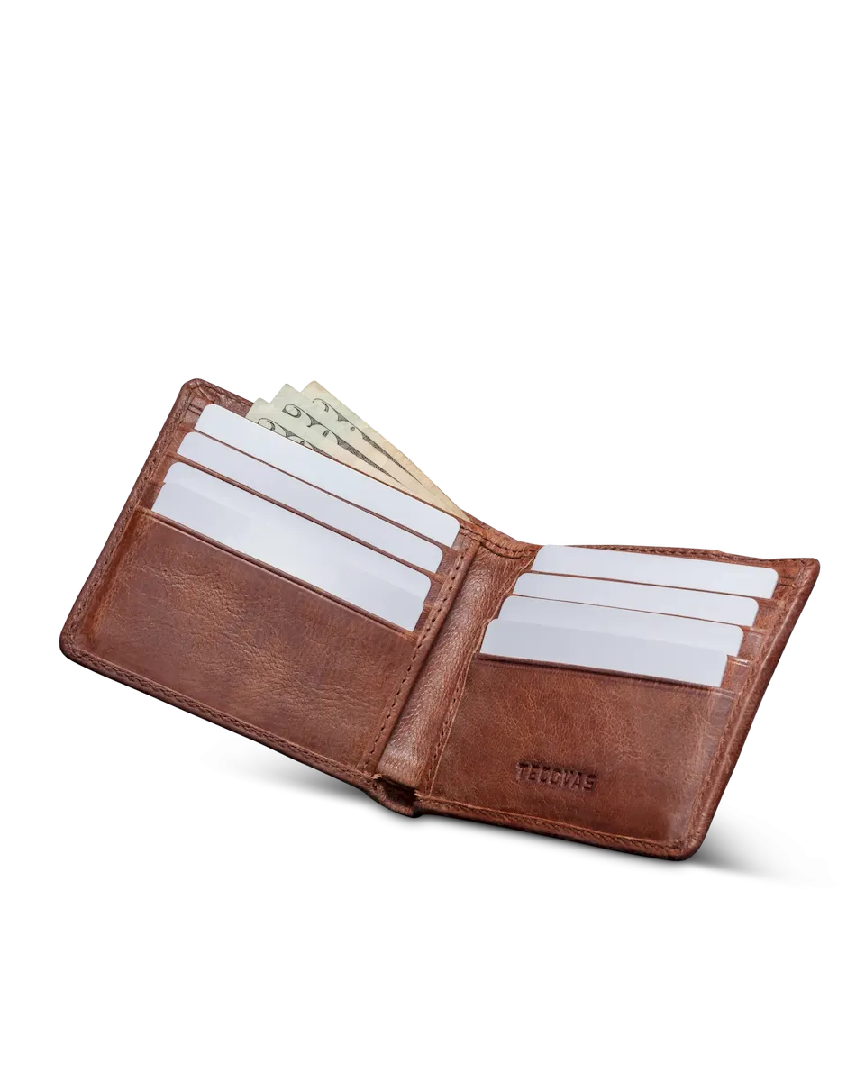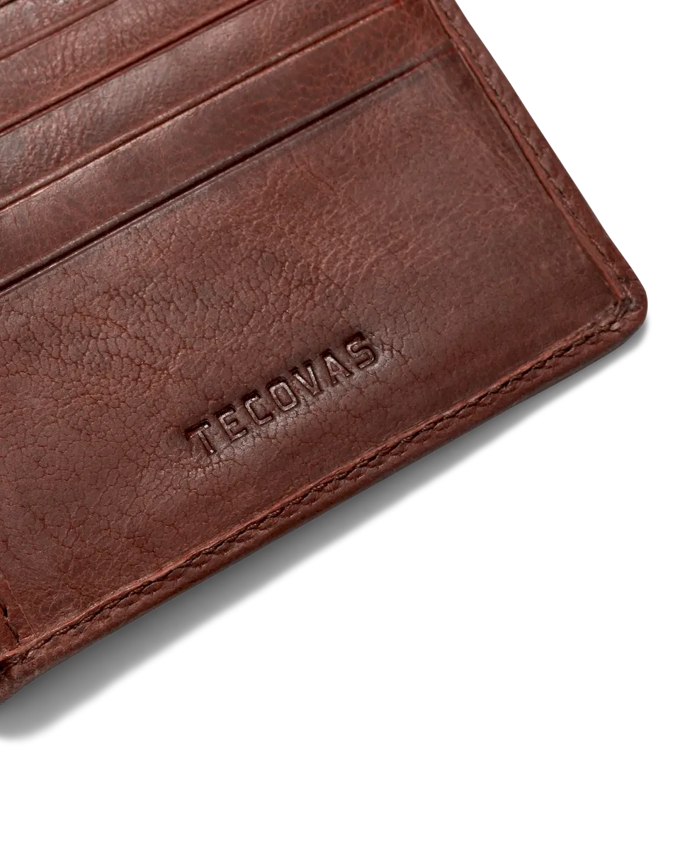Handcrafted from premium, quick-to-patina goat leather, our Billfold combines exceptional durability with refined style. Its bi-fold design offers ample space for your cards, cash, and identification, while the slim profile ensures effortless front- or back-pocket carry. Every detail—from the hand-stitching to the debossed Tecovas logos inside and out—reflects superior craftsmanship, while the folded-edge construction ensures long-lasting wear. With each use, the leather develops a richer character, making this Billfold not just a wallet, but an investment in style and function that only gets better with time.