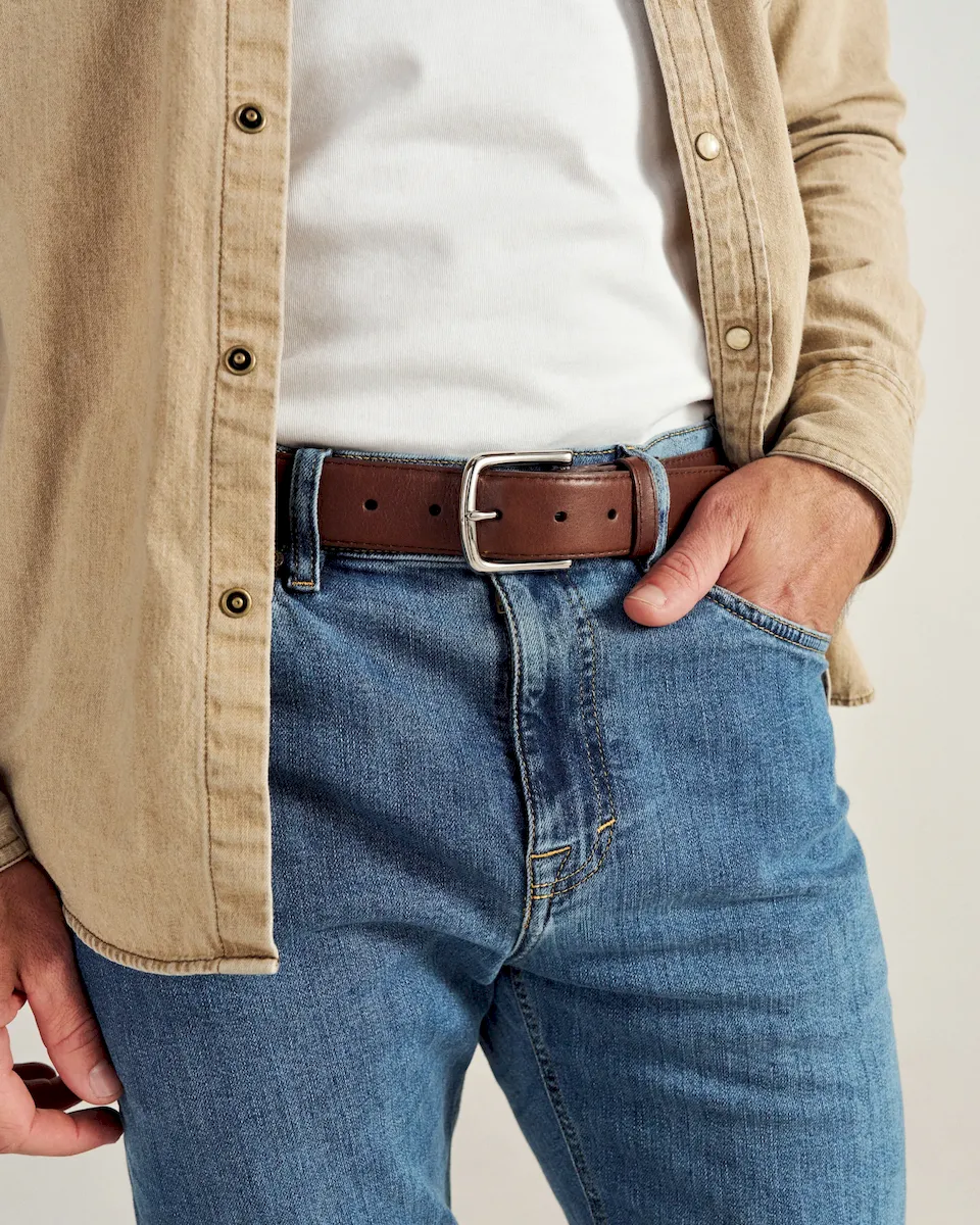 Match The Dean or The Cartwright in Hazelnut with a belt handcrafted from the same durable cowhide leather. Handmade in León, Mexico.