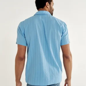 Crafted from lightweight, breathable cotton with a unique dobby weave, this shirt is designed to keep you dry and comfortable. The looser fit, lower button placement, and wide open collar provide a relaxed yet refined look. It’s straight hem is made to be worn untucked.