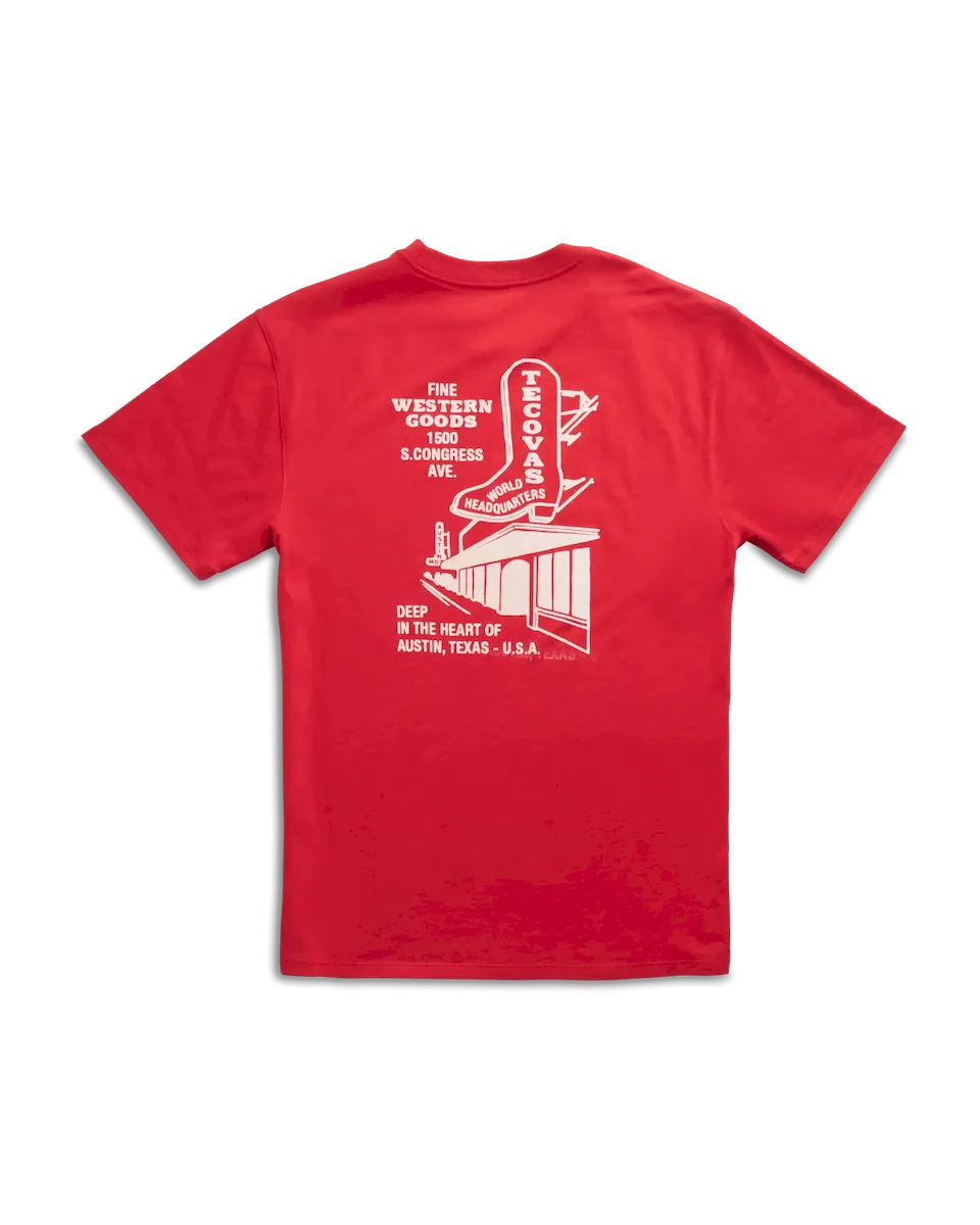Rep the heart of Texas with this bold tee, featuring the iconic Tecovas neon sign from our flagship store in Austin. Made with Pima cotton for all-day comfort, this shirt radiates Lone Star pride and Western flair. Whether you’re a local or just love Austin’s energy, this tee brings the glow of our flagship straight to you. Classic fit, tagless comfort—perfect for anyone who loves authentic Texas style.