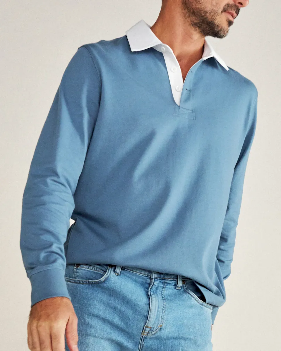 Made with our softest cotton yet, the Men’s Long Sleeve Polo is designed with ventilated underarms for a breathable wear and structured collar and ribbed cuffs for a relaxed but elevated look.