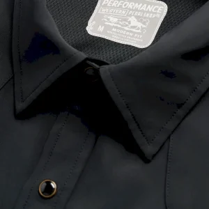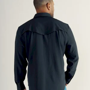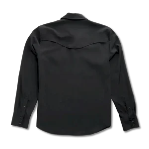 Made with a moisture-wicking polyester/spandex blend with plenty of stretch and wrinkle resistance, this garment is a sun specialist with a UPF50+ rating. It features a ventilated back yoke for extra breathability. Additional hot weather adaptations include a hidden sunglass wipe on the interior placket and a slot to stow your sunglasses on the chest pocket. It makes looking good easy with twin front pockets featuring subtle T-Brand detailing, all secured with antique brass-accented faux horn pearl snaps.