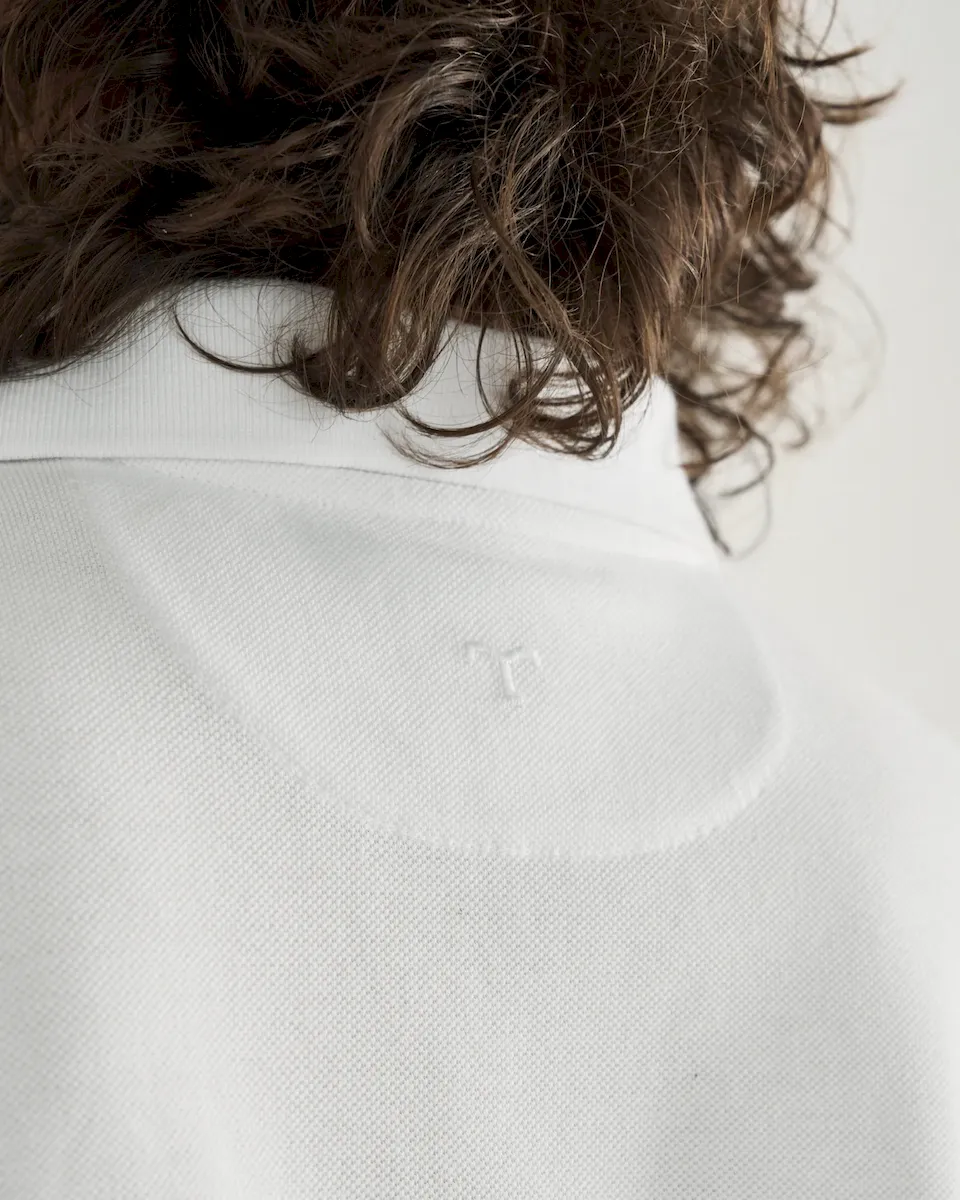 - Substantial collar reinforced at the back neck for shape retention