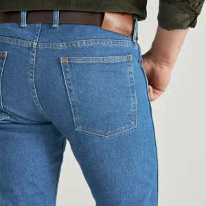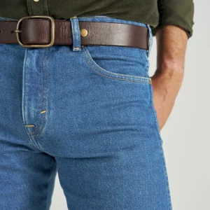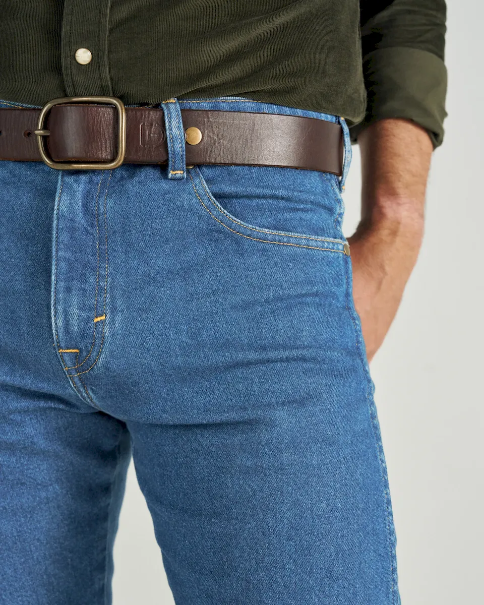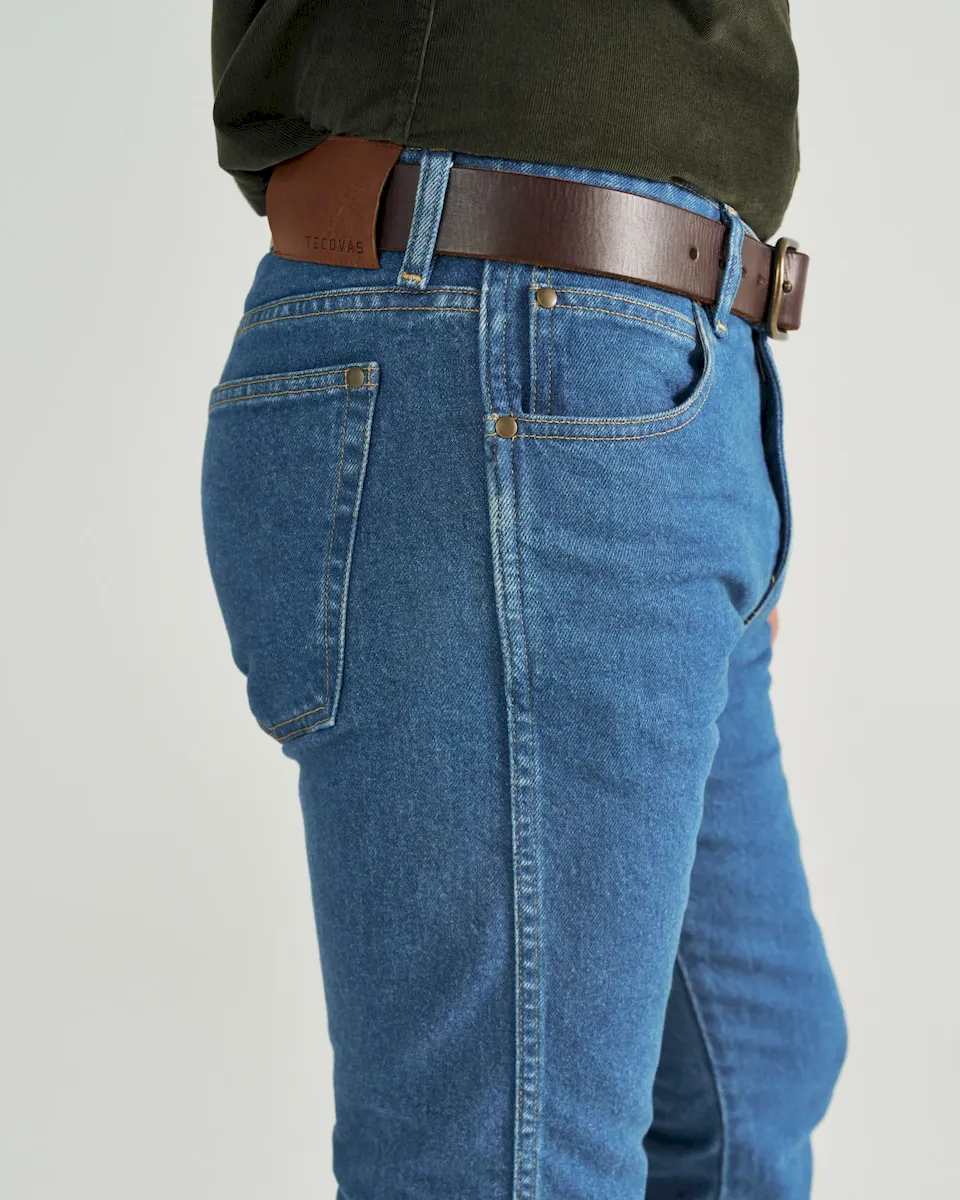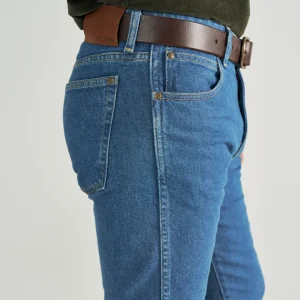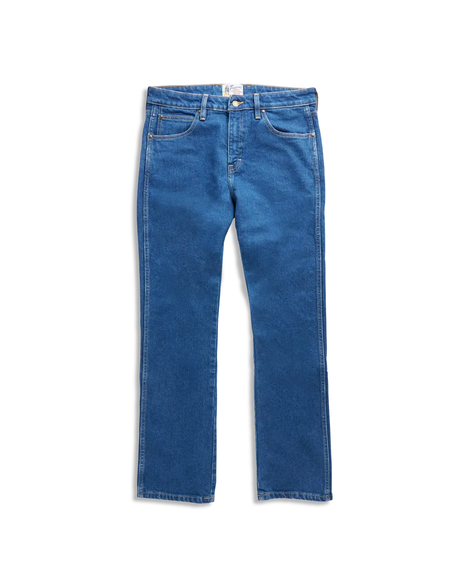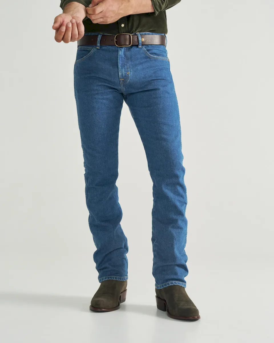 Made with American-milled denim from Mount Vernon—grown on U.S. farms and woven in Georgia—this one’s built for long days and hard wear. The Slim Straight fit runs tailored through the hips and thighs, with a clean, straight leg from knee to cuff. It’s got just a touch of stretch, so it holds up through serious wear without sacrificing comfort. Reinforced seams keep things tough. This denim starts out stiffer, but breaks in over time—softening and molding to your stride. Built for cowboys, but looks damn good off the clock too.