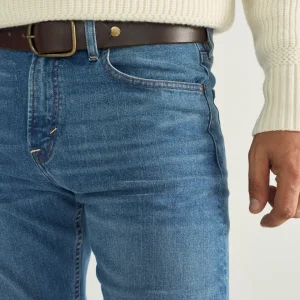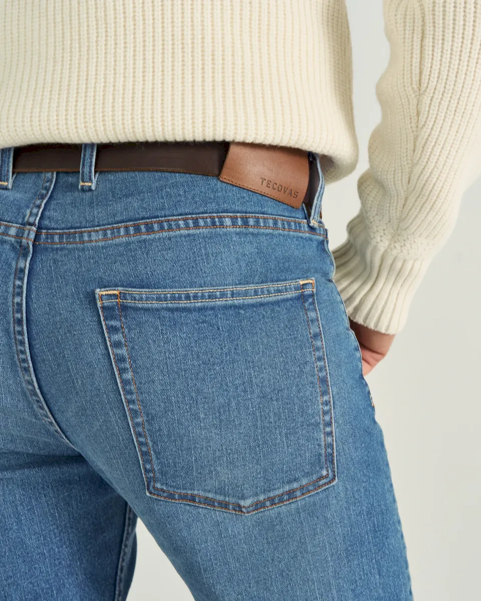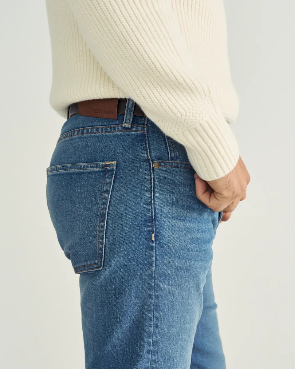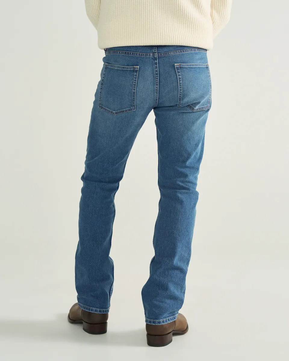 Crafted from premium performance denim by Cone Mills and blended with REPREVE® and Lycra®, this jean stretches with you but never bags out—holding its shape wear after wear. Lightweight, breathable, and softer than any jean you’ve ever worn. The kind of denim you’ll want to live in, but tough enough to work hard. The Slim Straight fit runs trim through the hips and thighs with a clean, straight leg from the knee down—designed to lay just right with boots or shoes. Built for everyday comfort, broken-in feel, and long-haul durability.