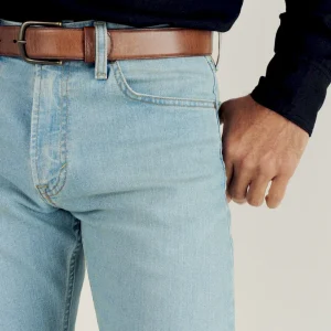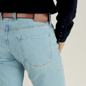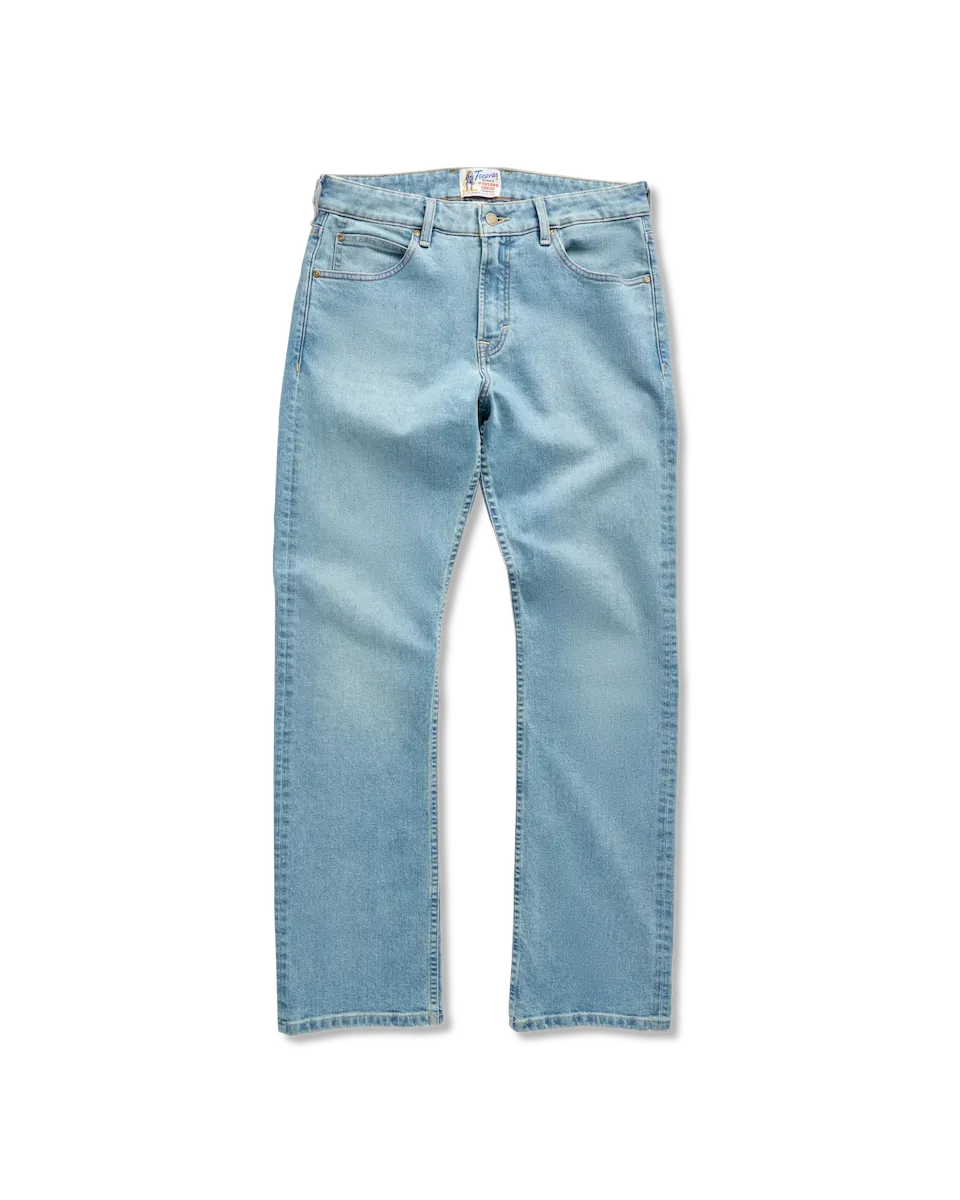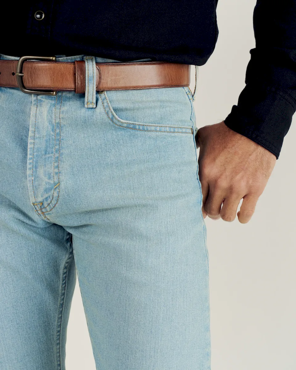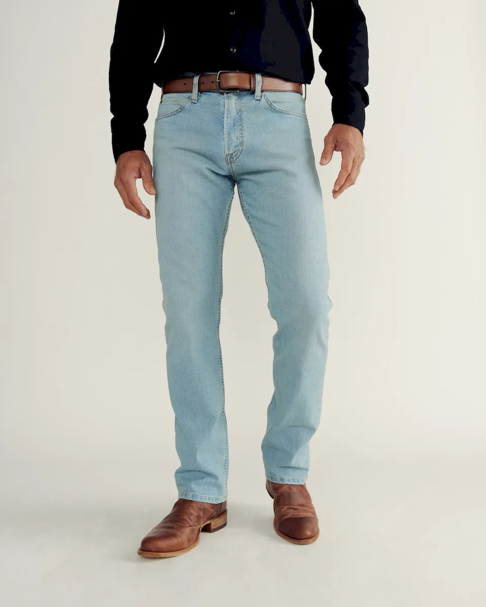 Crafted from premium performance denim by Cone Mills and blended with REPREVE® and Lycra®, this jean stretches with you but never bags out—holding its shape wear after wear. Lightweight, breathable, and softer than any jean you’ve ever worn. The kind of denim you’ll want to live in, but tough enough to work hard. The Slim Straight fit runs trim through the hips and thighs with a clean, straight leg from the knee down—designed to lay just right with boots or shoes. Built for everyday comfort, broken-in feel, and long-haul durability.