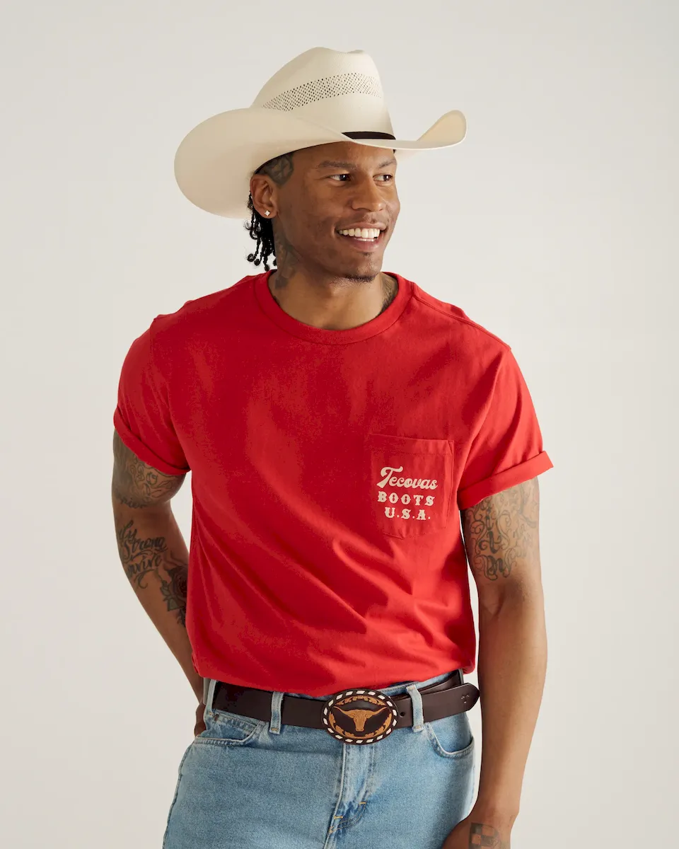 Made for everyday wear, this 100% cotton tee features Tecovas Boots USA on the pocket. A timeless staple, it combines laid-back comfort with a patriotic touch.