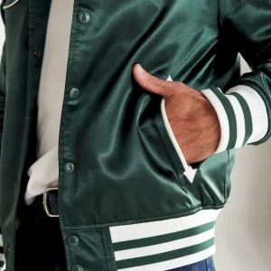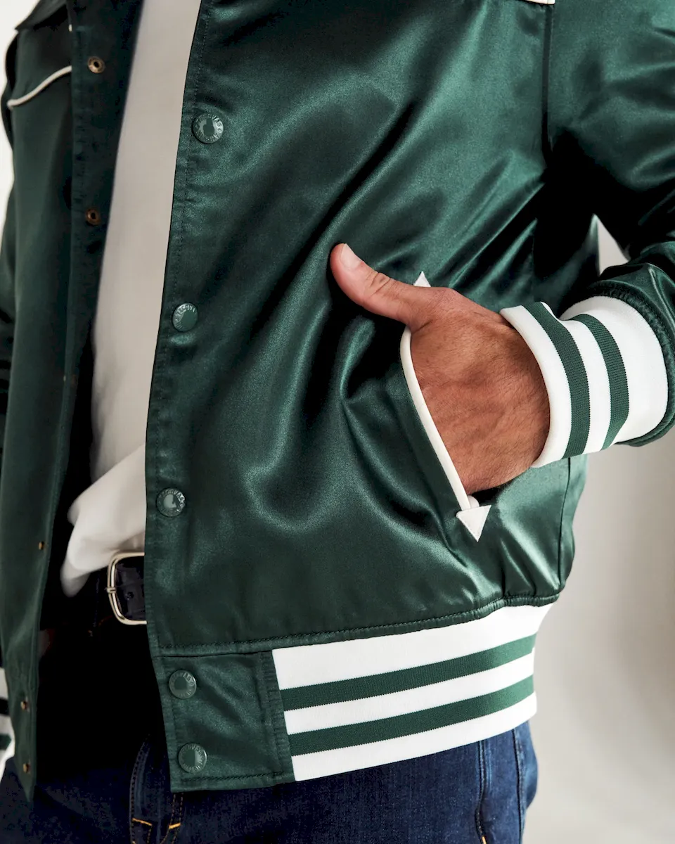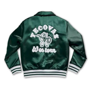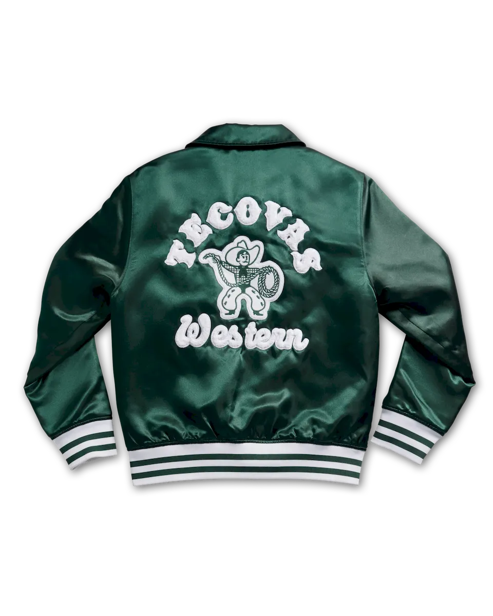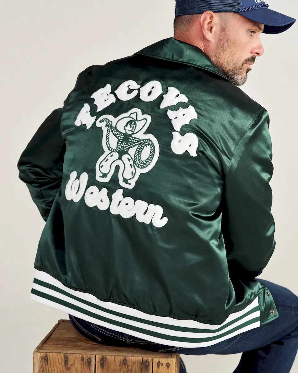 Whether you’re heading to the rodeo, a live show or a rollicking night out on the town, the Varsity Jacket brings Western flair to a traditional silhouette in a way that will draw eyes and compliments. Its satin finish makes a bold first impression and embroidered smile pockets, Western yoke trim, and varsity letter and patch logo on the back add texture and design detail. It’s a fun piece made for good times.