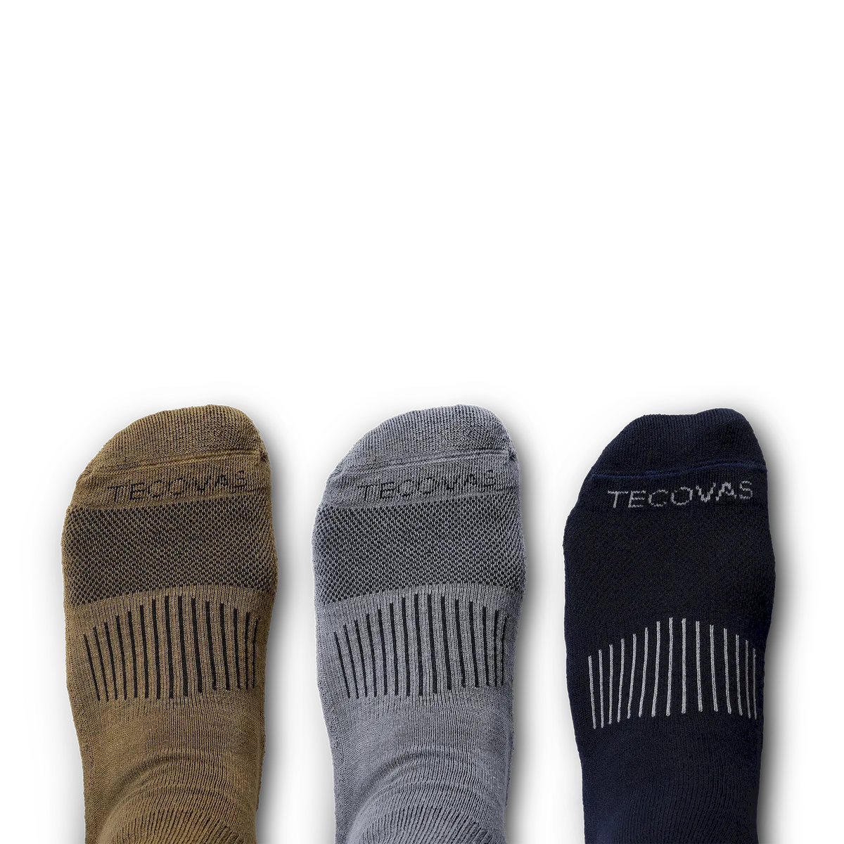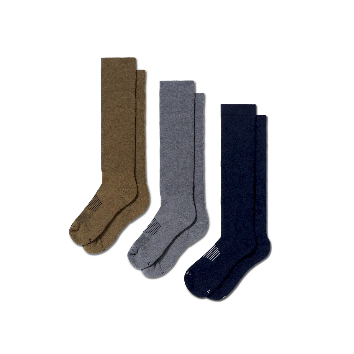 Our over-the-calf socks are purpose-built in the USA to be worn with both men’s and women’s boots. They feature an ultra-comfortable, moisture-wicking polyester blend that breathes in warm and cool weather, a long cut that stays up on the leg without sagging, and a half-cushion footbed with built-in arch support.