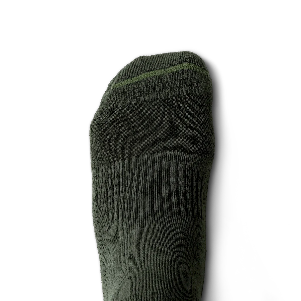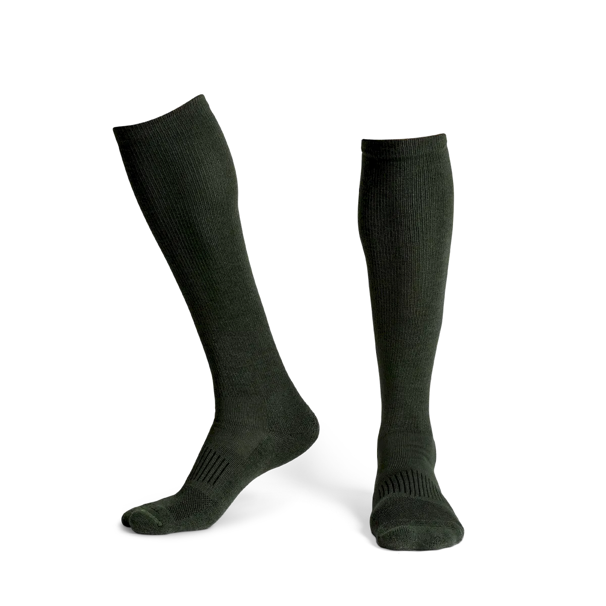 Our boot socks are purpose-built in the USA to be worn with both men’s and women’s boots. They feature an ultra-comfortable, moisture-wicking polyester blend that breathes in warm and cool weather, a long cut that stays up on the leg without sagging, and a half-cushion footbed with built-in arch support.