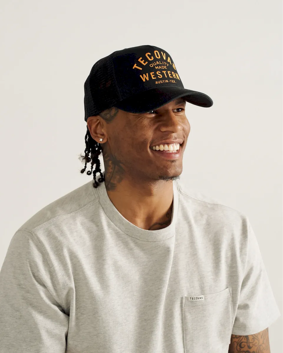 Rep your favorite western brand in style with the Quality Made Western Five-Panel Trucker Hat. The classic trucker crown and soft moisture-wicking headband partners up with a curved brim and breathable mesh back to keep the sun at bay, and your eyes on the prize. Rest easy knowing it’s securely in place with the adjustable snap closure.