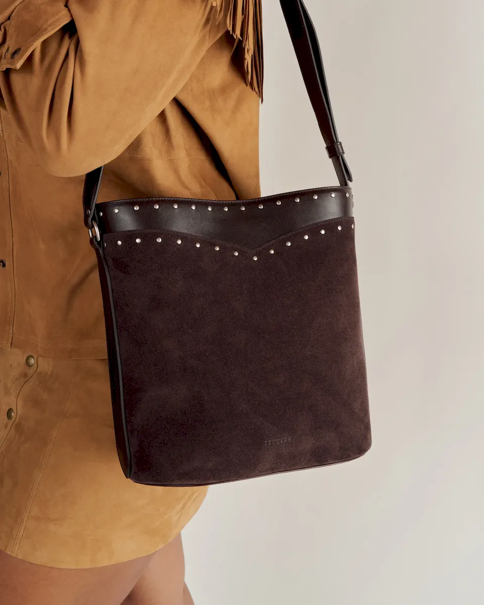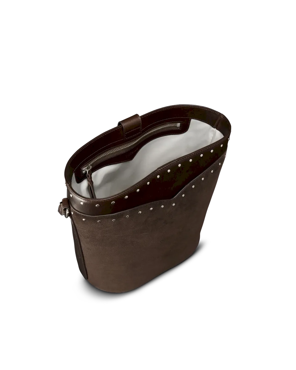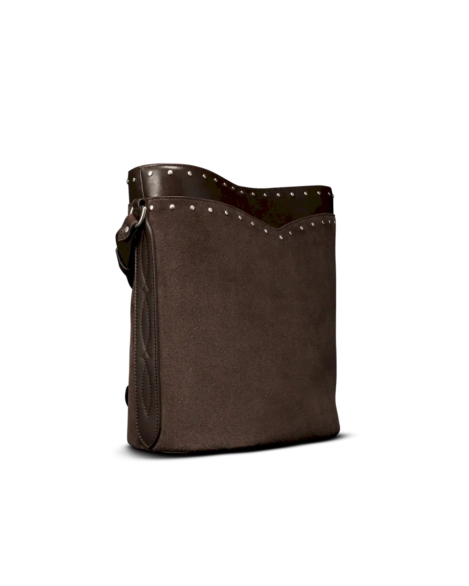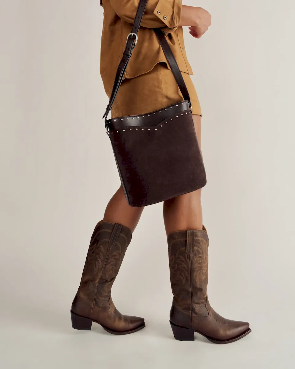 A seamless blend of Western lines and effortless cool, the Bucket Bag features signature stitching, bold rivets, and a refined mix of leather or suede for a look that’s both timeless and fresh. Spacious, structured, and built to last, it’s made to move with you.