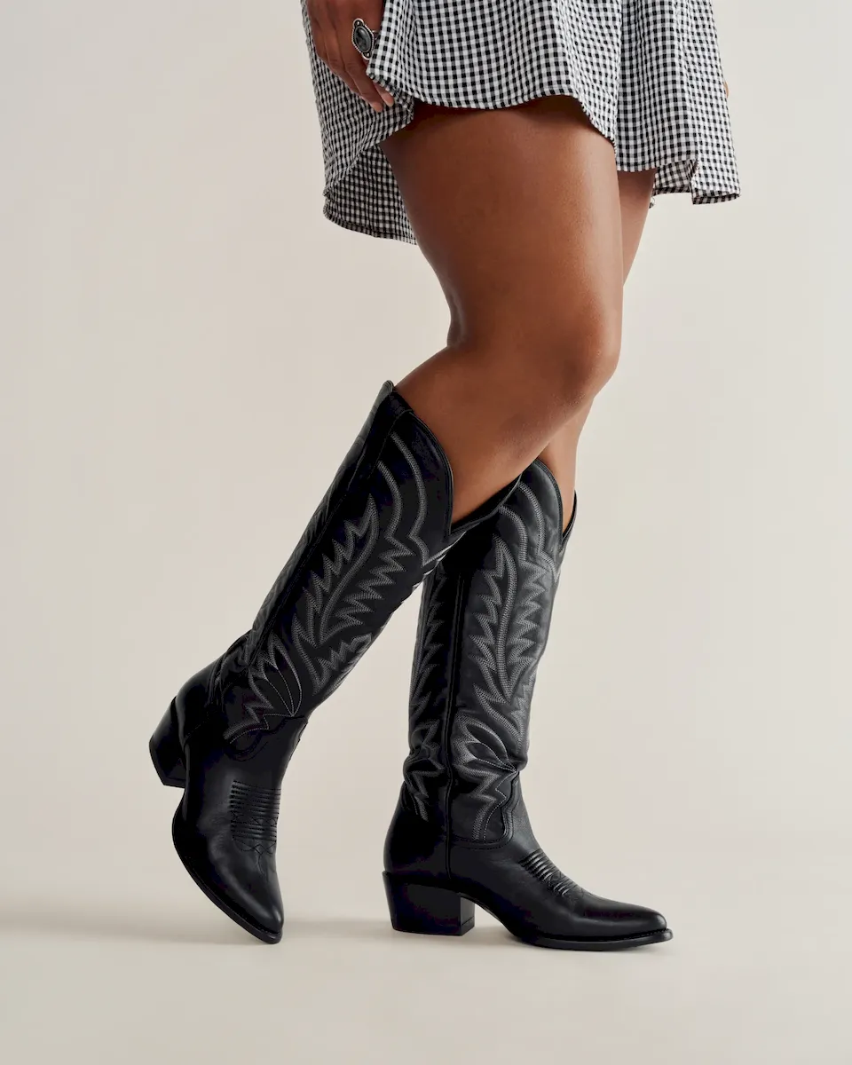Stride with confidence in The Abby, a tall, sleek stunner designed to turn heads. With a 17” shaft, this boot isn’t just tall—it’s bold. Intricate Western flame stitching runs up the shaft, adding striking detail that sets it apart. A 2” heel and our 0 toe keep you grounded in comfort, while classic touches like our signature toe bug complete the look. The Abby is made to elevate your style (literally).