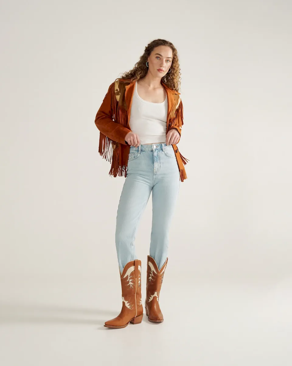 Built for the season, made to turn heads—the latest Annie brings fresh energy to a classic. Bold in its contrast, this version features beautifully crafted inlays that add just the right amount of edge to our signature silhouette. It’s a nod to crisp air, long weekends, and standing out in the crowd—whether you’re tailgate-bound or just dressing like it.