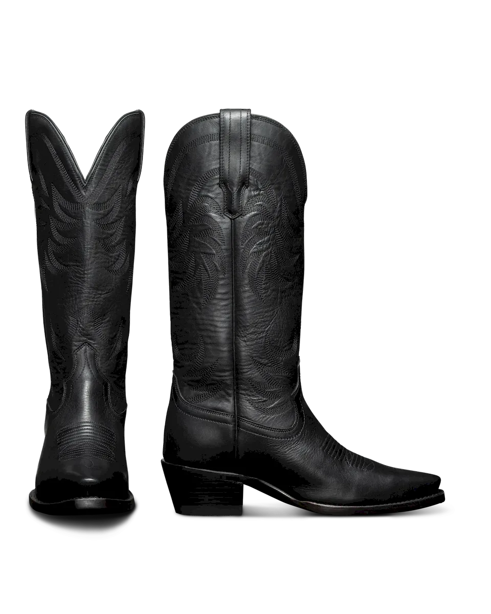 Meet The Annie, our best-selling cowgirl boot. Tall and timeless, a beautiful tonal stitching pattern adorns its 14” shaft, the top of which features a deep scallop for a comfortable, flattering fit. A fashion-forward snip toe leads the way and our signature toe stitching rounds out a classic look open to a wide range of styling possibilities. These premium boots are not to be missed and will age beautifully over time.