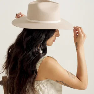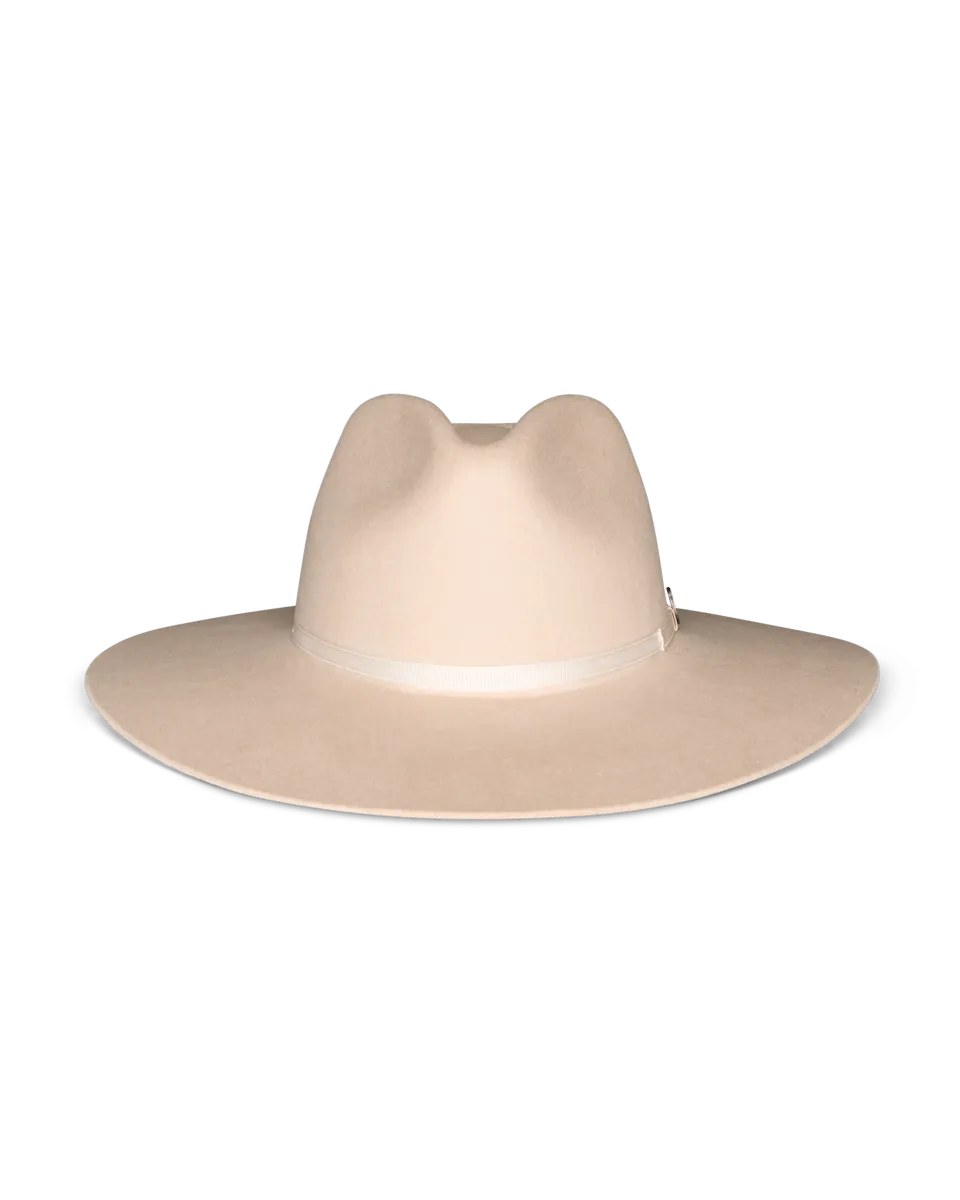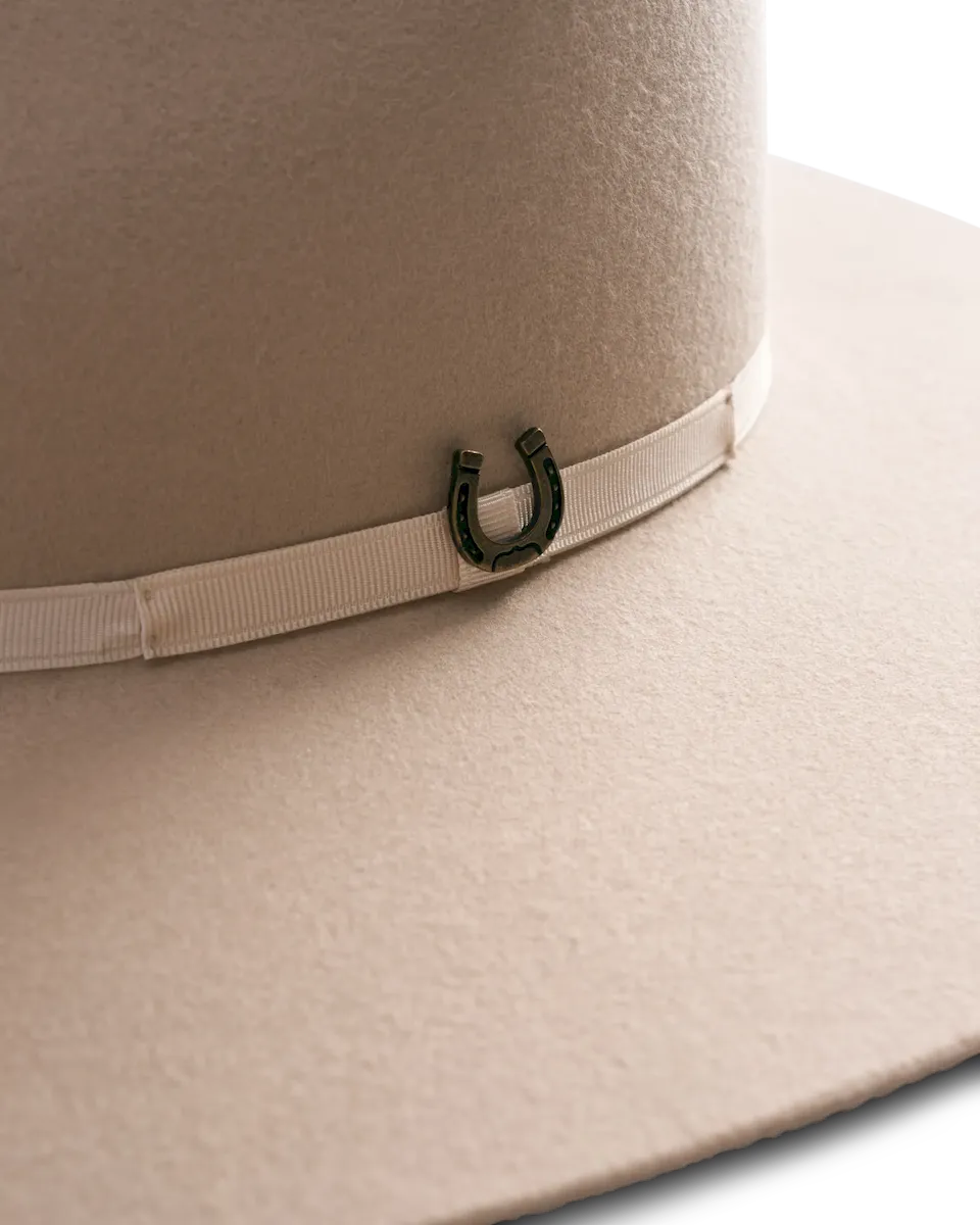 Handwoven from soft, durable 100% wool, the Belle Wool Cowgirl Hat is a must-have addition to any Western wardrobe. A classic pinch front, tastefully curved brim, polyester-satin interior lining featuring original Tecovas artwork, and leather headband show that quality and comfort matter, inside and out. Its grosgrain ribbon with a removable Lucky Horseshoe Pin will stack the odds in your favor — whether rockin’ out at a live show, or dressed up for date night.