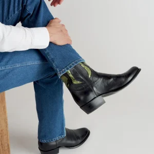 This exclusive Cartwright isn’t for the faint of heart. Crafted in midnight cowhide leather with striking Gambler Green python inlays and bold green stitching, it’s built to turn heads and take names. A classic round toe and 1 ½” stacked, angled heel deliver all-day comfort, while the 12” shaft and reinforced pull straps bring signature Tecovas durability. Whether you’re riding hard or stepping out, this boot makes a statement.