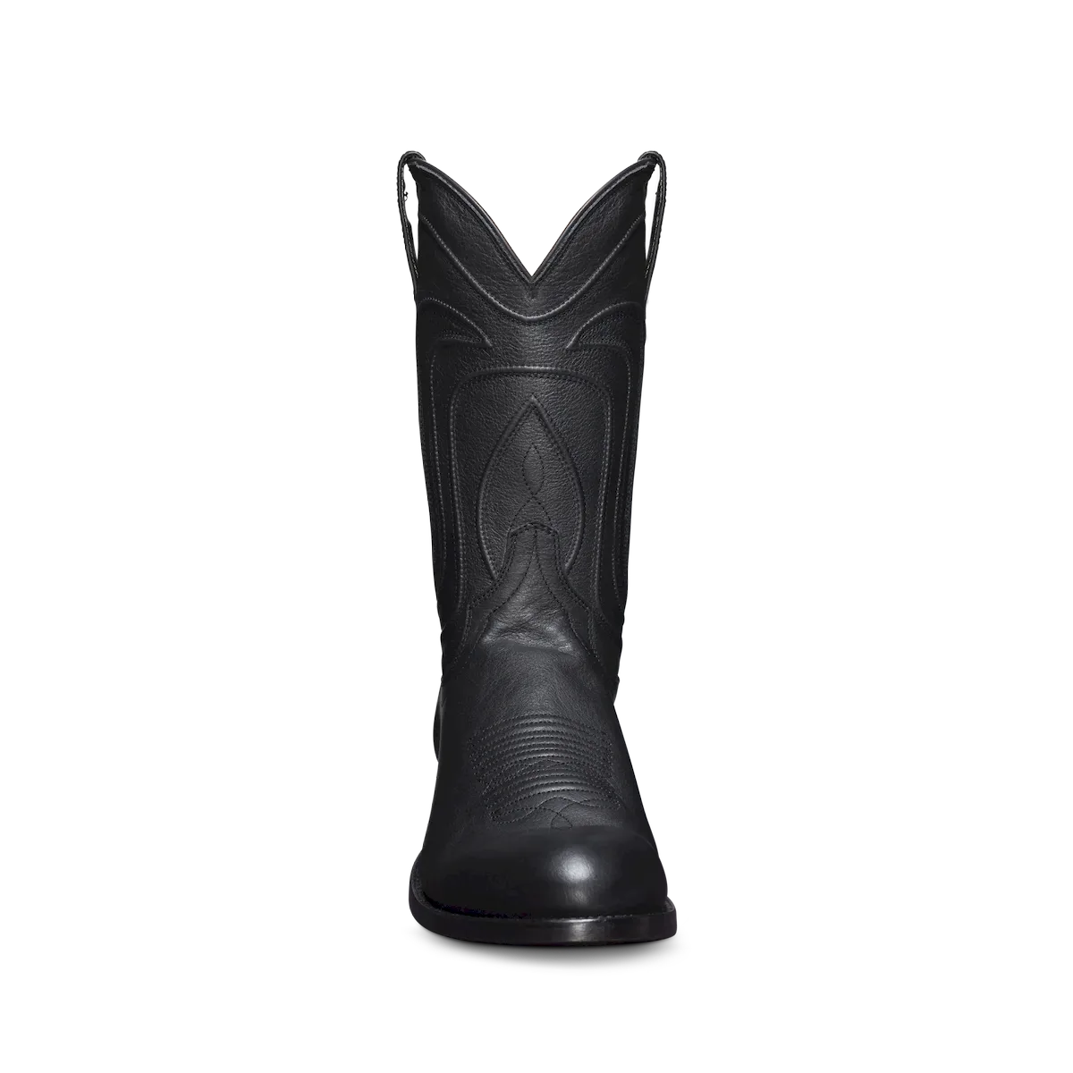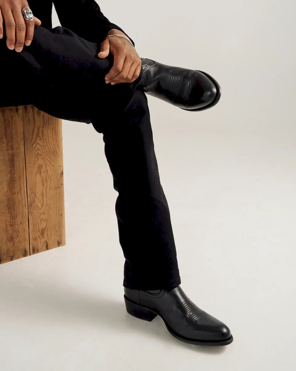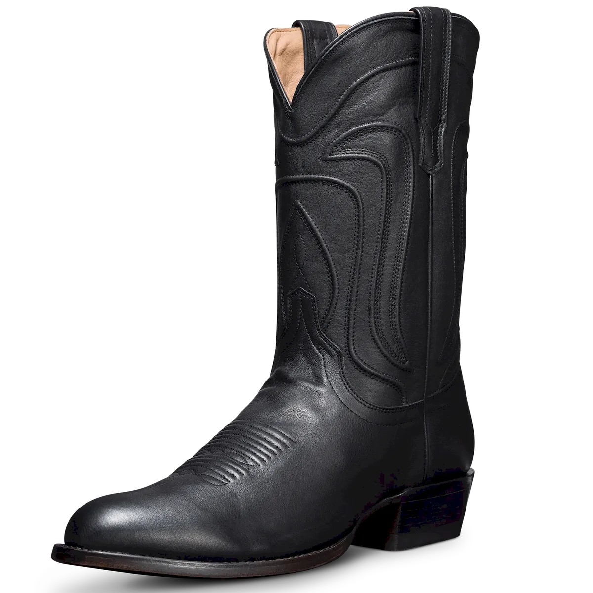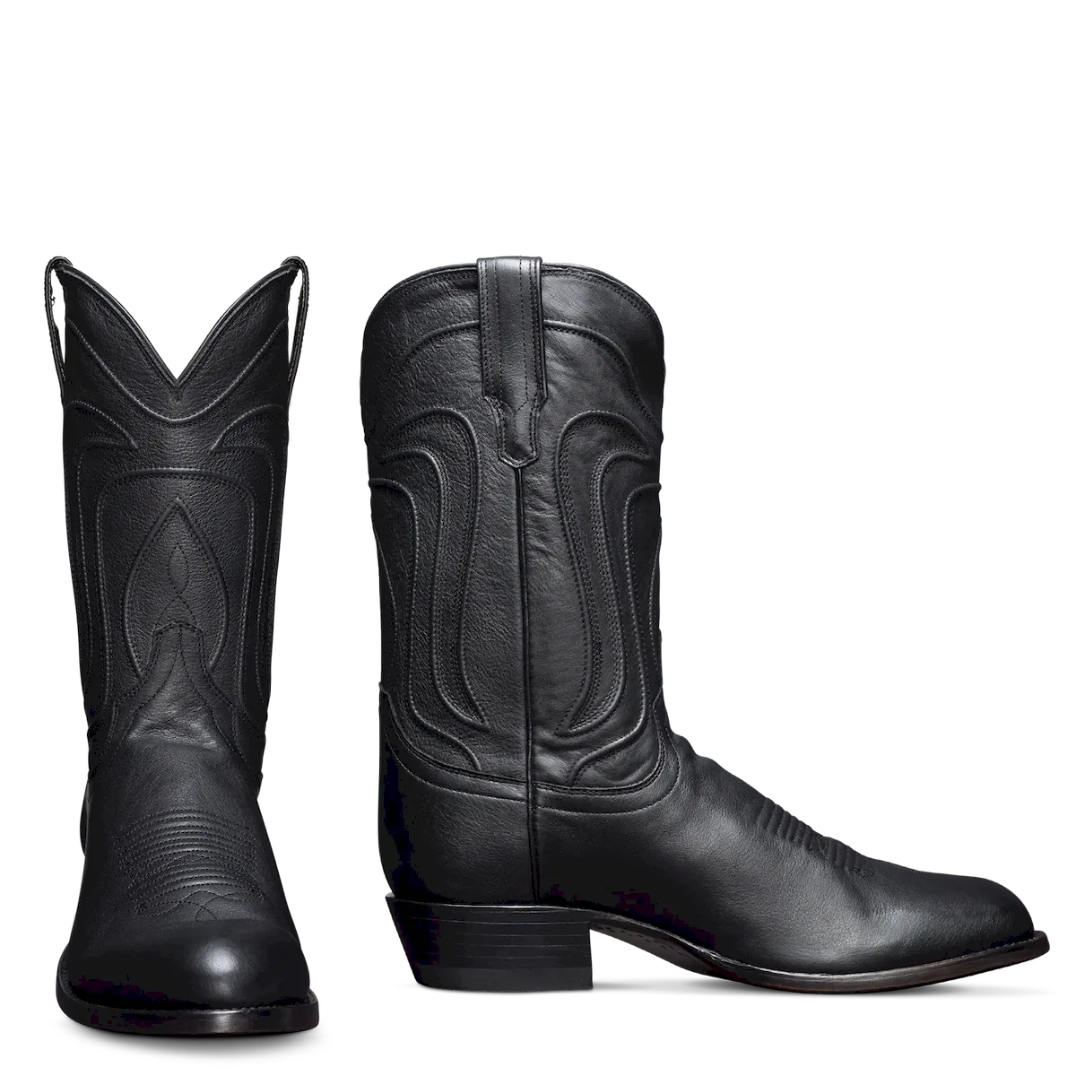 Our original cowboy boot is timelessly styled to look as good in 50 years as it does today. Its ageless nature starts with a classic round toe and 1 ½” stacked angled heel, and builds upon it with a vamp adorned with signature Tecovas toe stitching. A 12” shaft with hand-laid cording and reinforced pull straps complete its iconic western flair. You’re spoiled for choice: whether that be ultra-soft cowhide, rugged cowhide, or quick-to-patina goat. Suited up for an outdoor wedding, or decked out in denim and setting the dance floor ablaze at a honky tonk — The Cartwright was made for it.