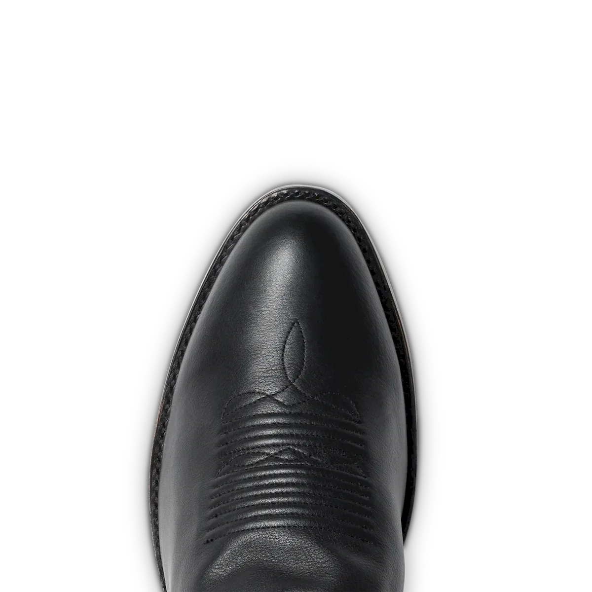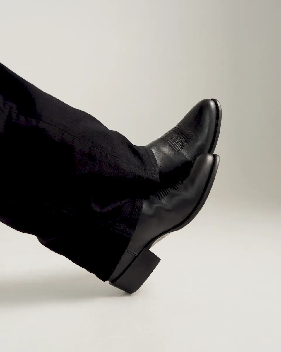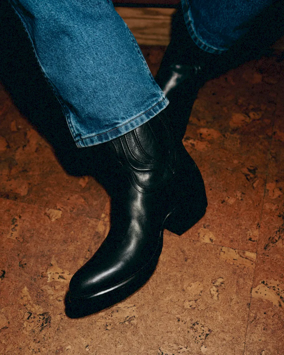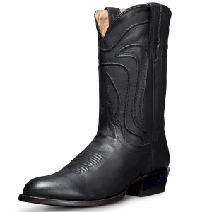 Our original cowboy boot is timelessly styled to look as good in 50 years as it does today. Its ageless nature starts with a classic round toe and 1 ½” stacked angled heel, and builds upon it with a vamp adorned with signature Tecovas toe stitching. A 12” shaft with hand-laid cording and reinforced pull straps complete its iconic western flair. You’re spoiled for choice: whether that be ultra-soft cowhide, rugged cowhide, or quick-to-patina goat. Suited up for an outdoor wedding, or decked out in denim and setting the dance floor ablaze at a honky tonk — The Cartwright was made for it.