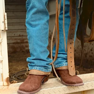 A true cowboy’s companion, The Cody is back with a fresh pop of color. Crafted from water-resistant bison or roughout with a bovine shaft, The Cody is built for long days in the saddle. Featuring our original broad square toe, weatherproofed seams, and a slip-resistant Vibram sole, it’s made to keep you steady wherever the trail leads. A removable insole provides all-day comfort, while reinforced pull holes make slipping them on and off effortless.