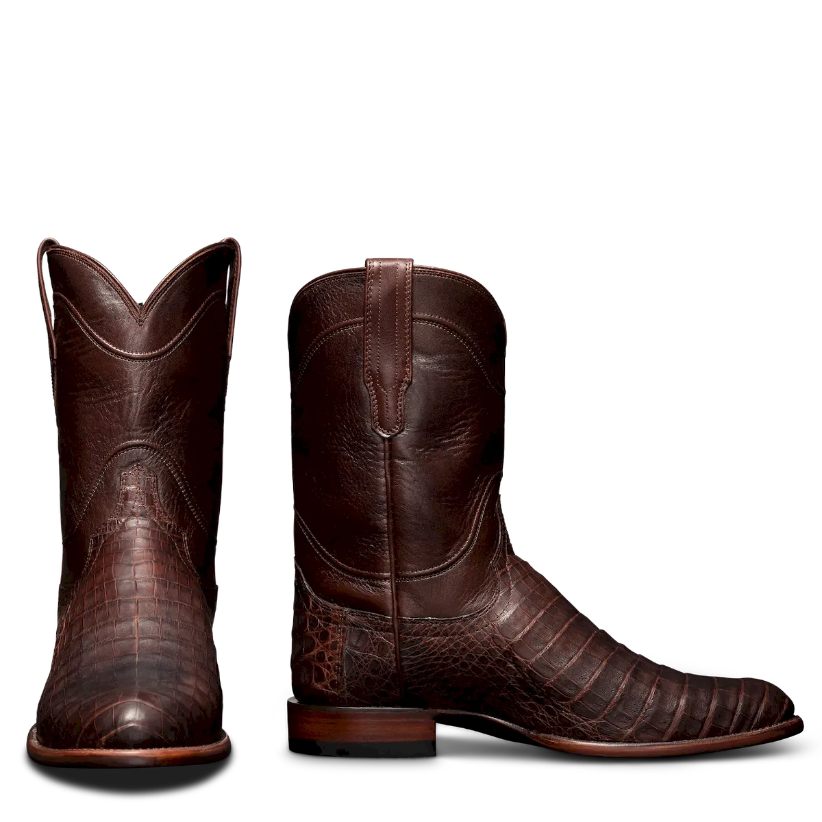 The Cole is a true testament to craftsmanship, featuring hand-lasted caiman belly, one of the most supple and sought-after exotic leathers, shaped meticulously into our classic roper profile. We craft the vamp from a single, unbroken piece of caiman, ensuring superior quality, durability, and a seamless look. Achieving this level of flexibility and refinement in such a durable hide speaks to the artistry behind each pair. A sleek cowhide shaft and low, understated heel let the exceptional quality of the caiman belly take center stage, delivering luxury and lasting comfort.