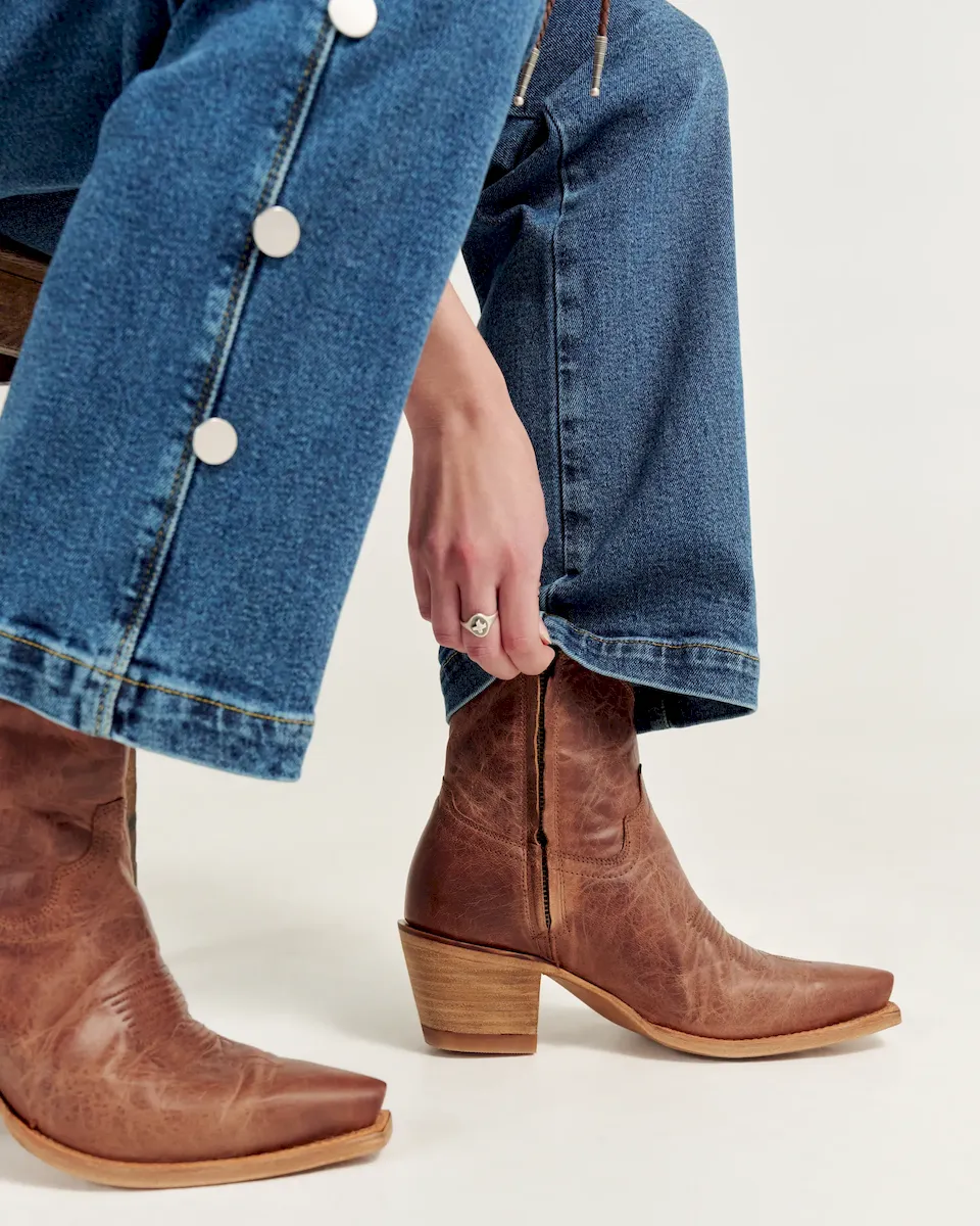 The original Tecovas zip bootie, perfected. With a snip toe and a 2 ½” leather heel, The Daisy has just the right edge to turn heads while staying effortlessly wearable. Her versatility shines — whether paired with jeans or a dress, she always looks the part. That little extra heel height offers the perfect lift, giving you a flattering look. Designed for miles of comfort, Daisy features an inside zipper for easy-on access and our signature toe bug for that classic Western touch. She’s timeless, she’s confident, and she’s made to move.