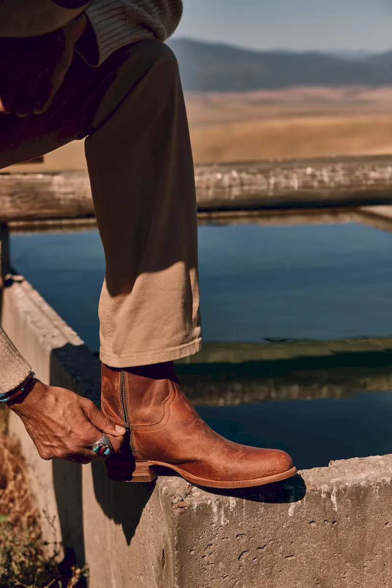 Designed for effortless versatility, The Dean is a modern take on the classic western boot, blending refined craftsmanship with impressive functionality. Its slim-cut 8” shaft is tailored for a sleek fit under fitted jeans and pants, while a discreet side zipper guarantees effortless wear while maintaining authentic Western style. Crafted with premium leather inside and out, this boot features a round toe for a timeless silhouette and a durable leather sole. Dressed up or down, The Dean is built for wherever the day takes you.