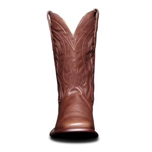 The Doc embodies rugged sophistication with premium materials and meticulous design. Built with a broad square toe, it features our signature toe stitching for a refined yet classic look. The 12” shaft showcases an intricate flame stitch pattern, designed for effortless jean stacking, while the double-stitched welt ensures long-lasting durability. Lined with hung leather for enhanced comfort and finished with a traditional leather sole and ¾ Goodyear welt construction for superior longevity.