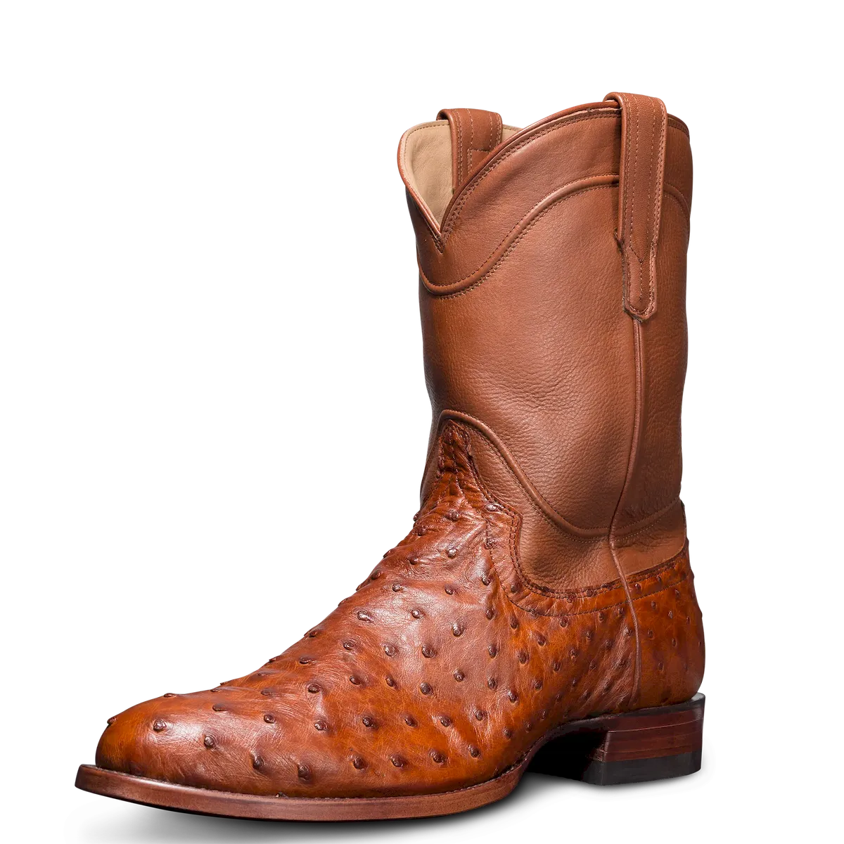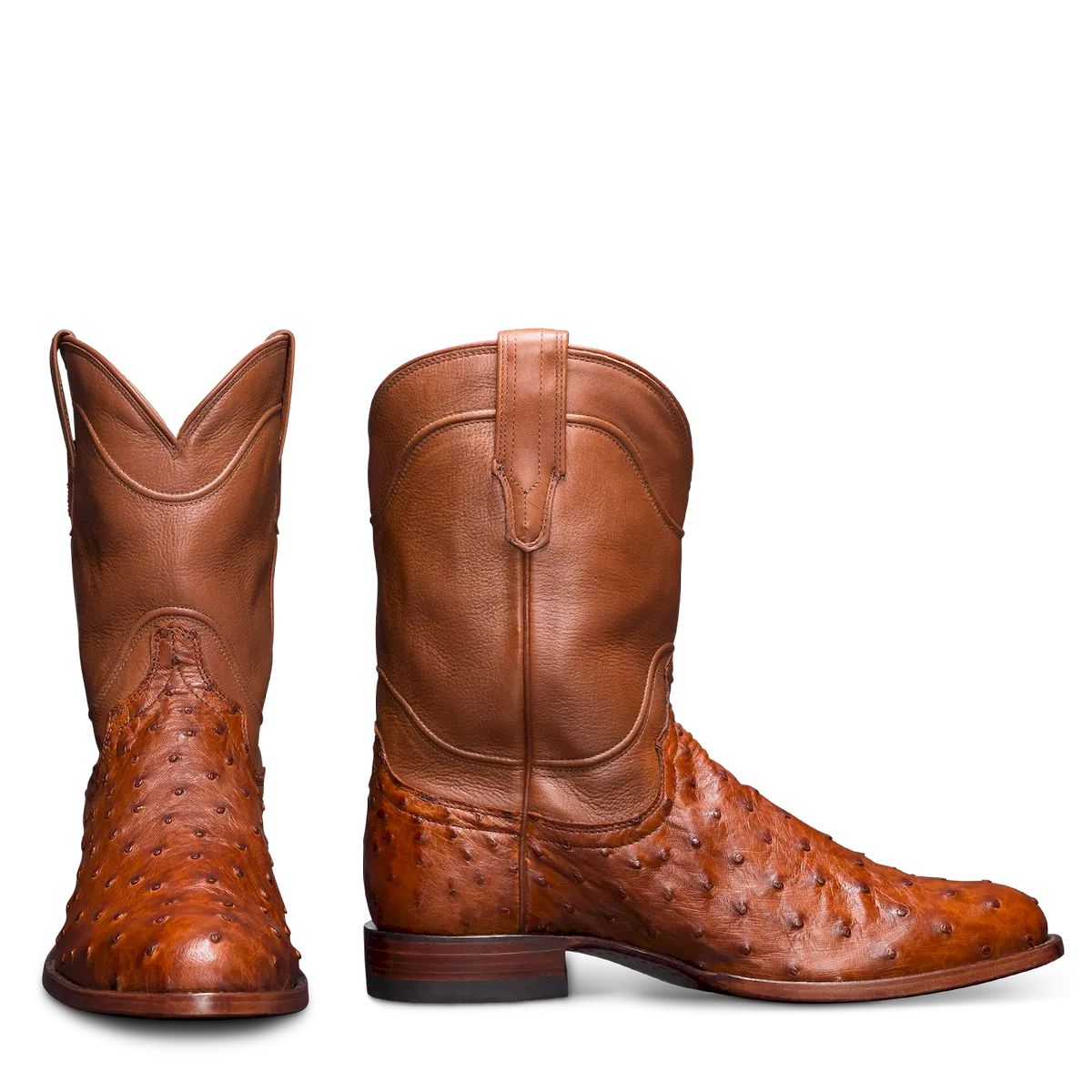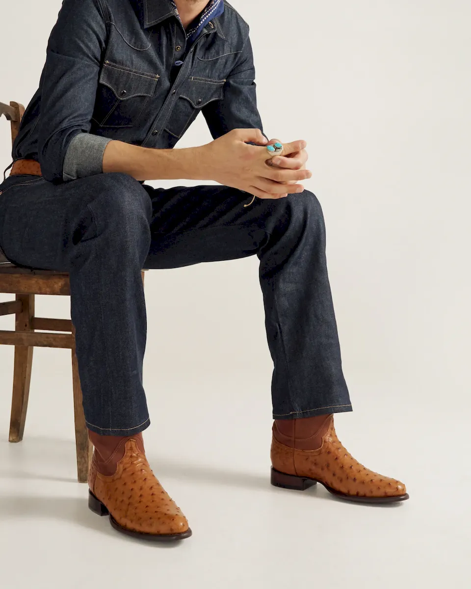 The Duke is a refined take on the classic roper, designed to let its materials speak for themselves. Crafted from luxurious full-quill ostrich leather, its smooth, unembellished cowhide shaft keeps the focus on the rich texture and natural beauty of the exotic leather. A slightly shorter 1 ⅛” heel and timeless round toe ensure all-day comfort, while Goodyear welt construction and a leather outsole provide lasting durability. Effortlessly sophisticated, The Duke is a testament to understated elegance.