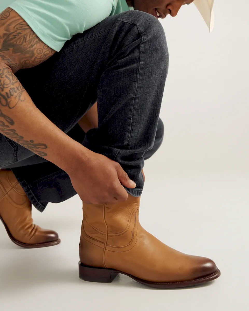 The Earl is a versatile roper boot with universal appeal. Designed to be both practical and stylish, it features a heel shorter than that of a traditional cowboy boot and select colors even feature a slim Vibram rubber outsole for all condition comfort. The vamp is left unadorned in order to showcase whichever premium leather you choose.
