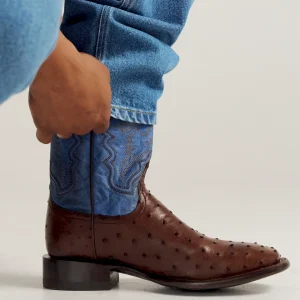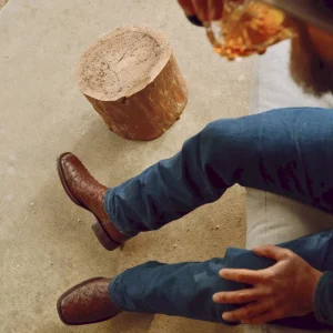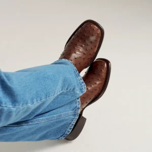 Raise the bar on style with the stunning, slipper-like comfort of full-quill ostrich in our traditional broad square toe profile. A great boot made even better, The Emmitt has been updated with a sweeping new shaft design and a tri-layer insole anchored by a steel shank. Tried and true hallmarks of quality remain the same: hung leather lining, leather outsole, and Goodyear welt construction. Handcrafted in León, Mexico.