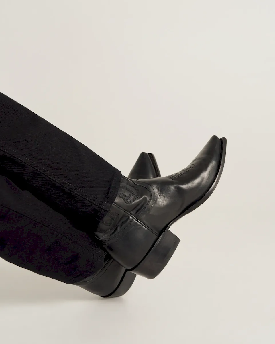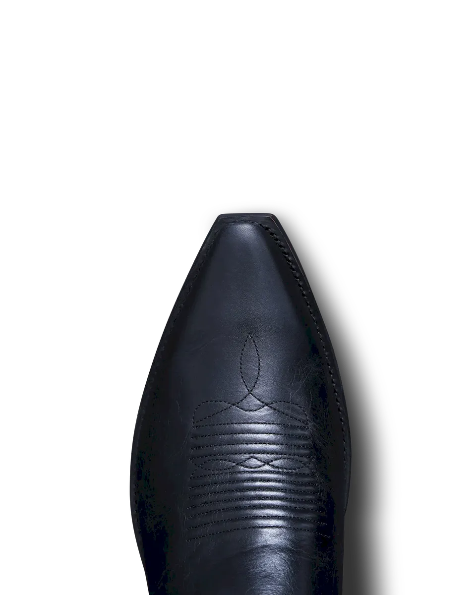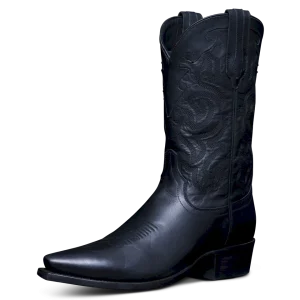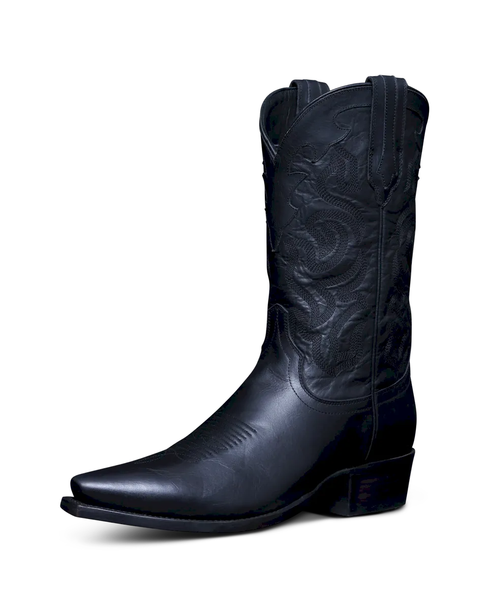 The Garrett is a snip-toe cowboy boot offered in a variety of leathers. With design details from top to bottom, The Garrett is a handsome fella. A high standard for craftsmanship and creativity is set with our first collar and pull tab overlays and further emphasized by the intricate shaft stitching. In Cafe goat leather from top to bottom, The Garrett brings a rugged, classic sensibility to any outfit. Featuring a cowhide shaft, the full-quill ostrich version will dress up denim and slacks night or day. And for daily versatility, look no further than Midnight cowhide.