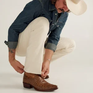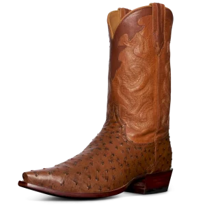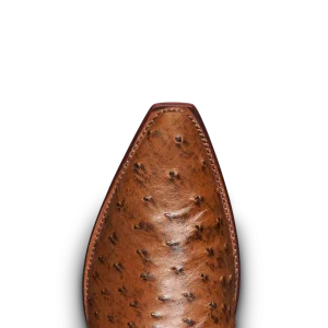 The Garrett is a snip-toe cowboy boot offered in quick-to-patina goat leather and quintessential full-quill ostrich. With design details from top to bottom, The Garrett is a handsome fella. A high standard for craftsmanship and creativity is set with our first collar and pull tab overlays and further emphasized by the intricate shaft stitching. In Cafe goat leather from top to bottom, The Garrett brings a rugged, classic sensibility to any outfit. Featuring a cowhide shaft, the full-quill ostrich version in a new color we call “Peanut”, will dress up denim and slacks night or day.