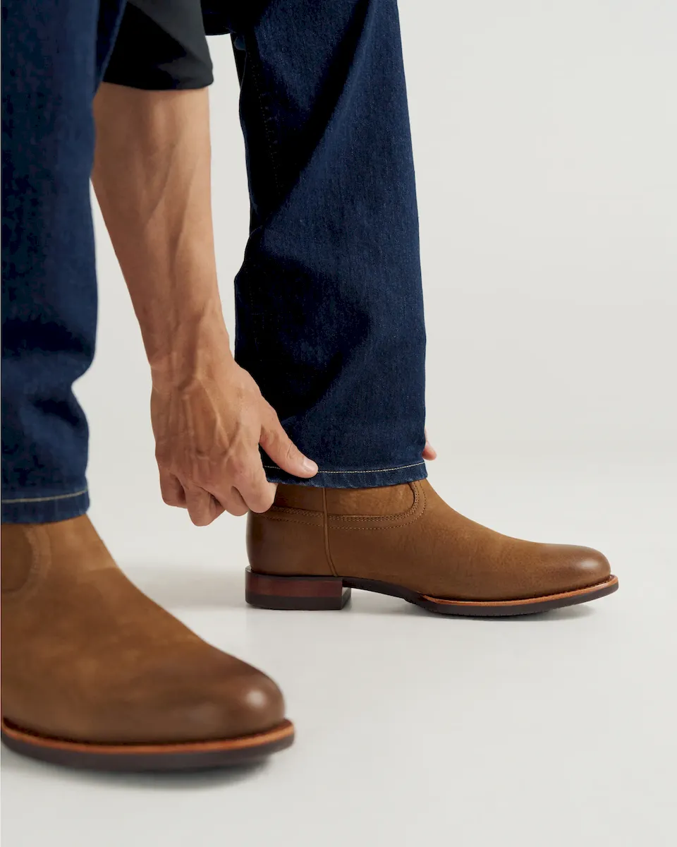 Your everyday boot, upgraded. The Glen is made for the modern frontier—whether you’re working the land or owning the streets. Classic Western style meets next-level comfort and durability, built to keep pace with all-day adventures. Thanks to a wider roper toe, your feet get the space they deserve, making long hours feel effortless. Crafted from premium cowhide and finished with a rubber outsole, these boots handle weather and wear like a pro, without ever sacrificing comfort.