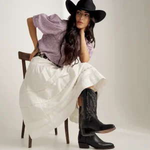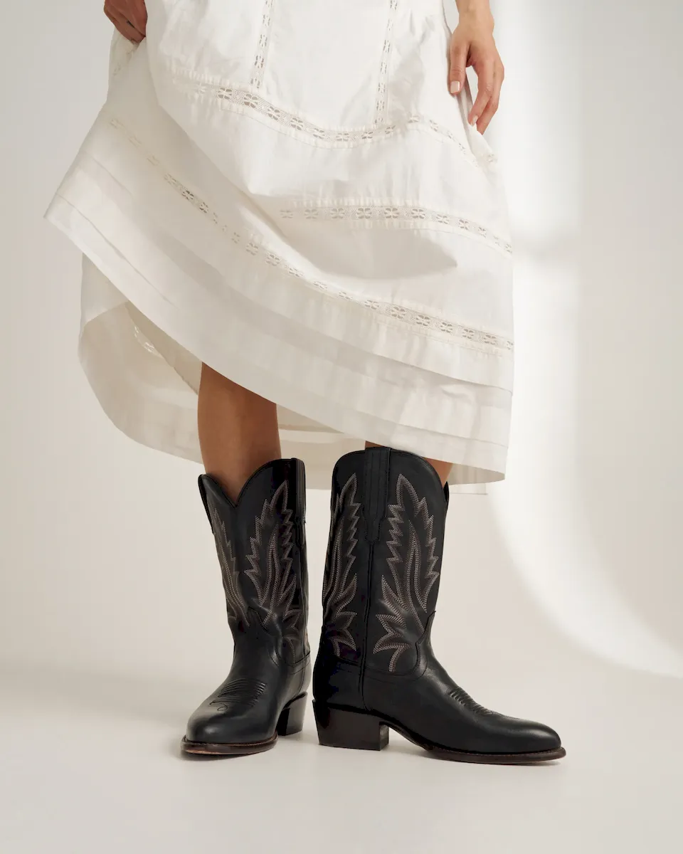 Meet The Jamie, a modern cowgirl boot that blends classic Western charm with superior Tecovas craftsmanship. Updated with a sweeping eight-row stitch pattern, premium hung lining for added breathability, it’s a boot crafted for effortless style with unrivaled comfort. Whether you’re standing through encores at a country concert or spending your evening two-stepping at your local dance hall, The Jamie promises comfort and elegance for every occasion. Here in a variety of cowhide and exotic leathers and rotating seasonal colors.