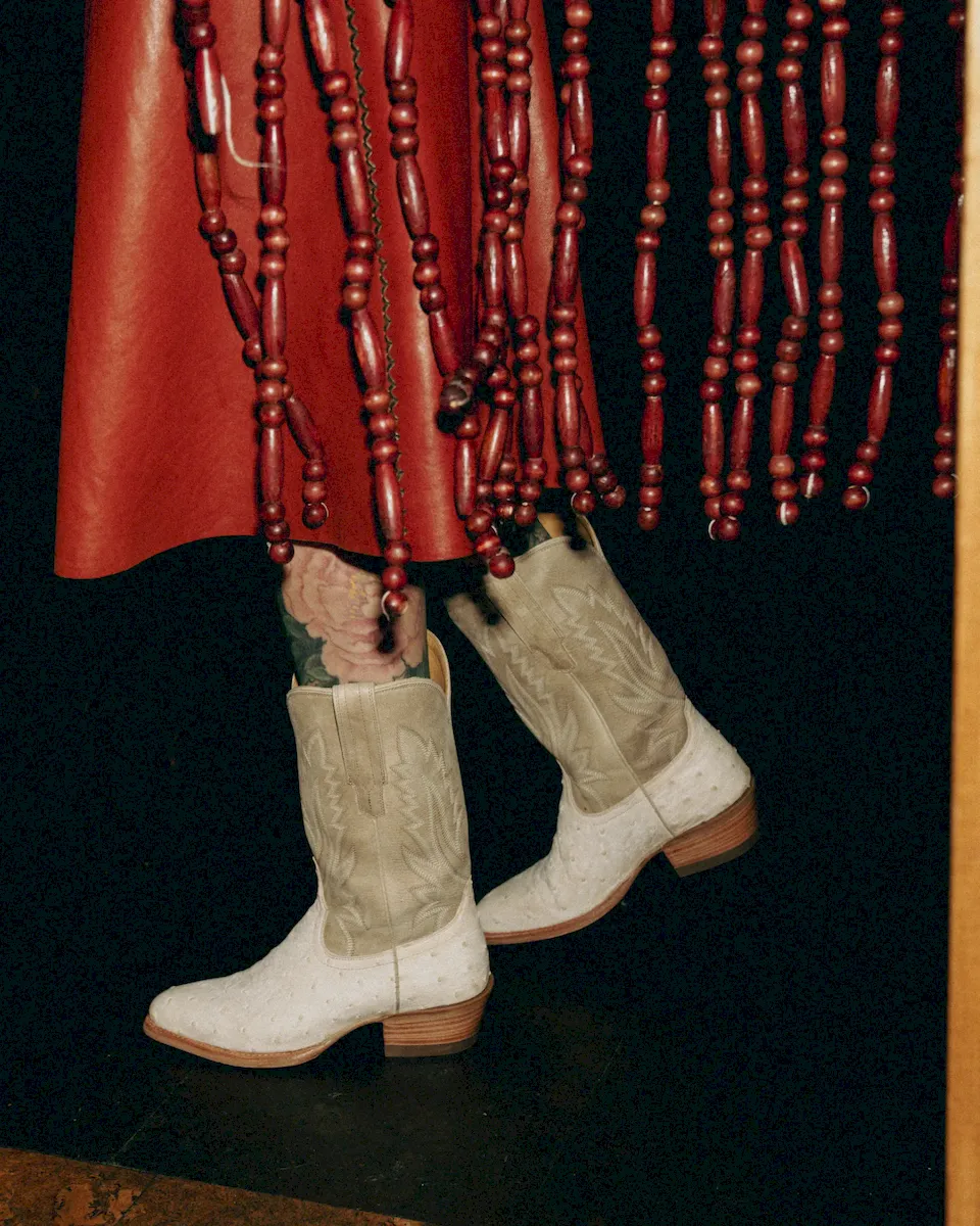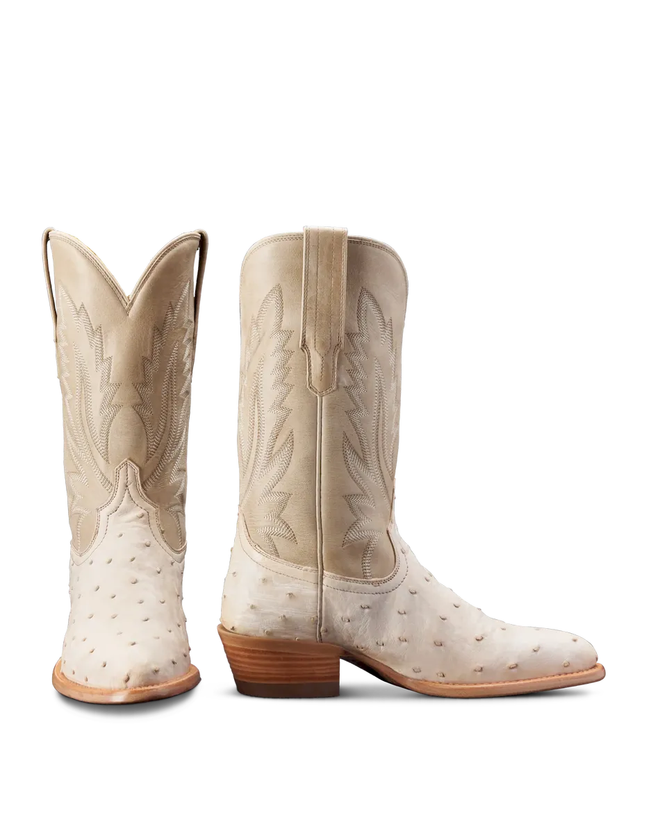 The Jamie Pearl is a fresh take on a familiar favorite. Crafted from supple full-quill ostrich leather, it delivers unmatched softness, durability, and a distinctive texture that sets it apart. The updated eight-row stitch pattern adds a refined touch, while the classic round toe, 11” shaft, and 1 ¾” stacked leather heel with a rubber cap ensure comfort and stability. Finished with ultra-comfortable hung leather lining, leather sole, and ¾ Goodyear welt construction, the Jaime is built to last—perfect for wherever the day (or night) takes you.