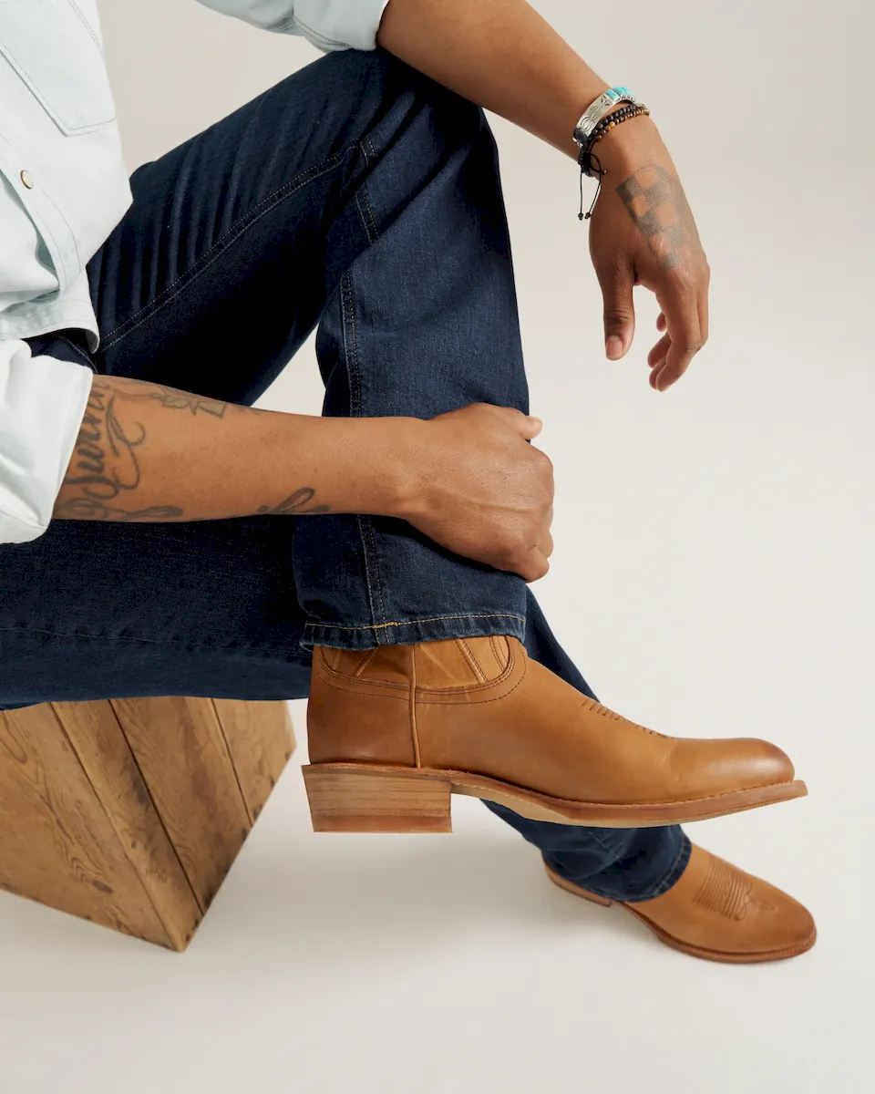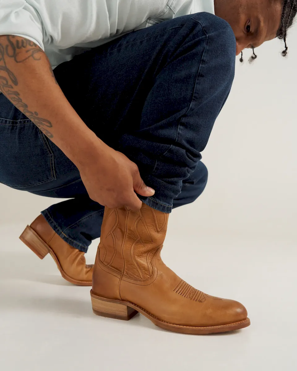 Our timeless cowboy shape is now weather ready. The Jason stands on a full-length Vibram rubber sole and is wrapped entirely in water-resistant cowhide. It still has the profile of a classic dress boot, but now it’s ready for the rain and muck. When you’re looking for a boot to serve you daily, in weather good or otherwise, look no further than The Jason.