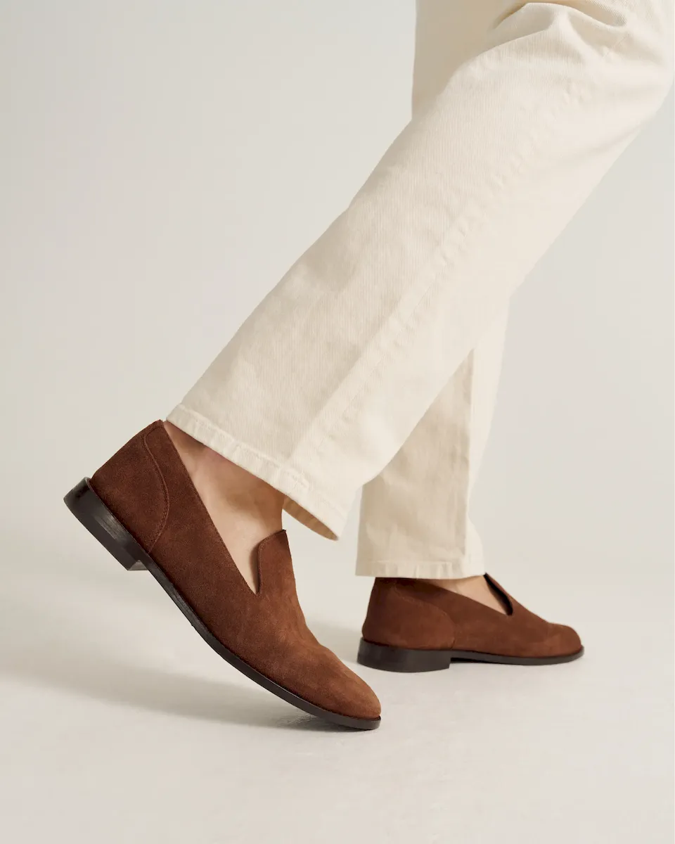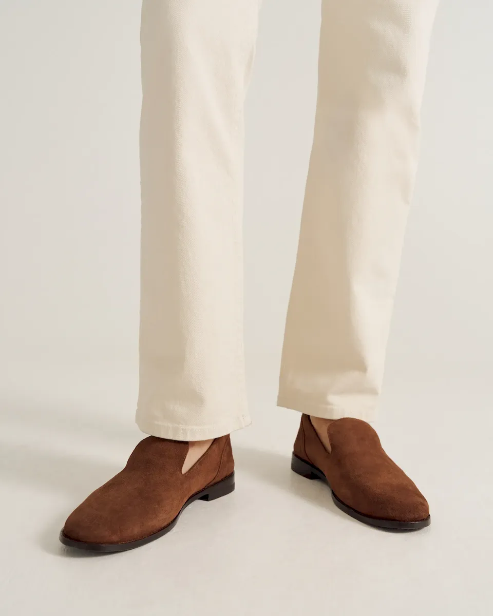 Our original men’s slip-on is handcrafted with a Blake stitch construction. It has a padded leather insole, a hybrid rubber and leather sole, and an interior suede heel grip.