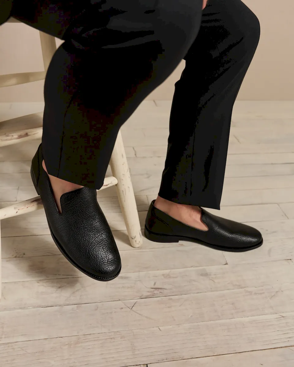 Our original men’s slip-on is handcrafted with a Blake stitch construction. It has a padded leather insole, a hybrid rubber and leather sole, and an interior suede heel grip.