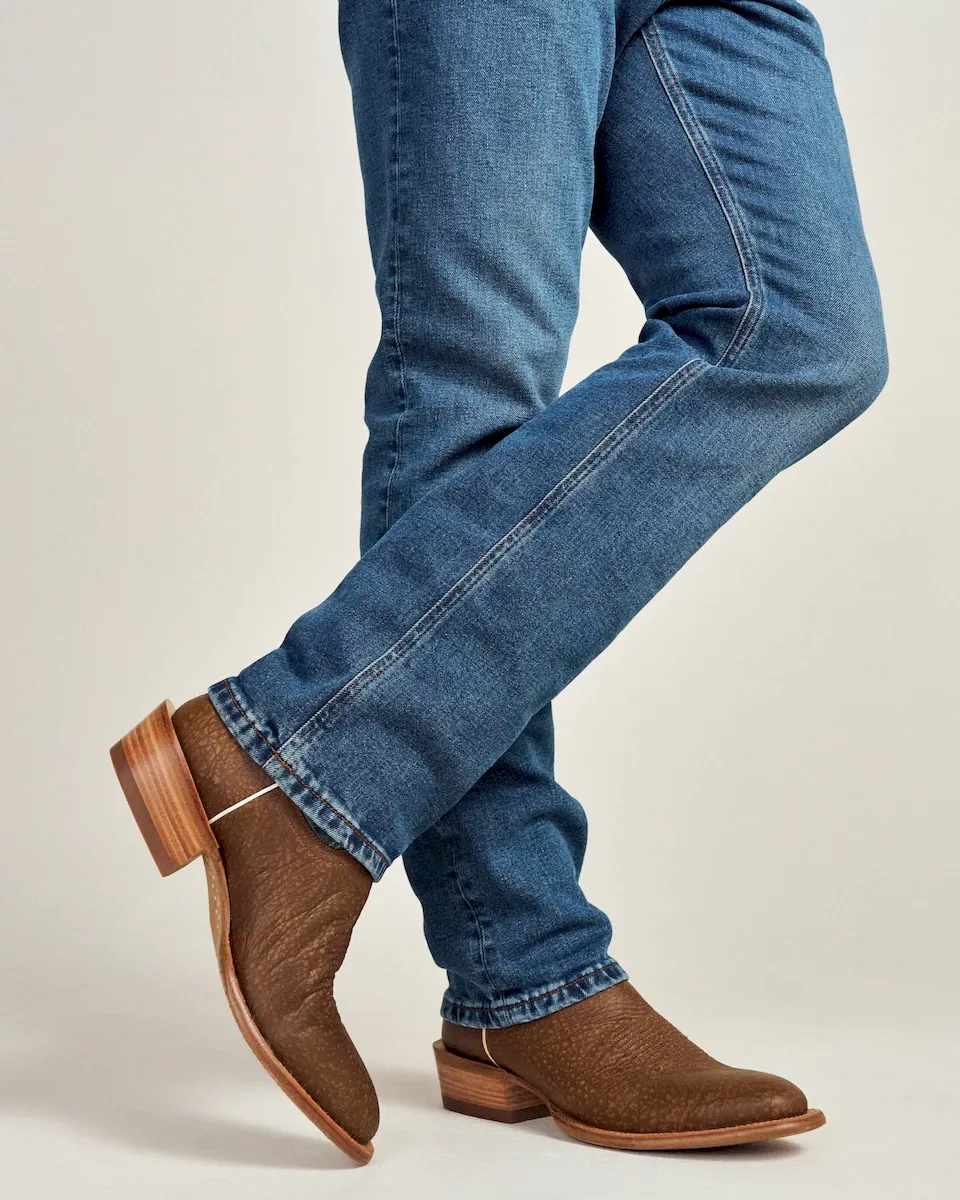 - Durable, water-resistant bison or thick bull hide vamp and counter