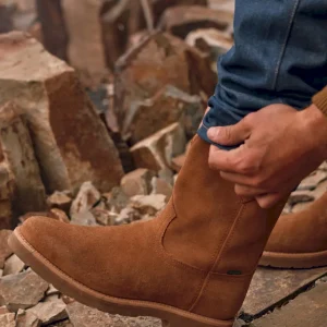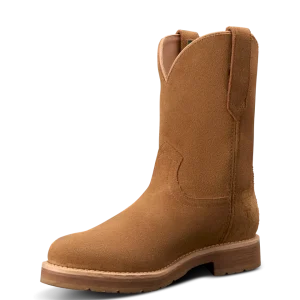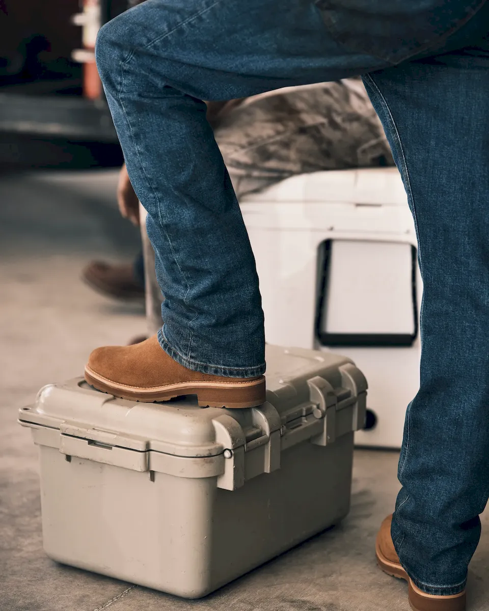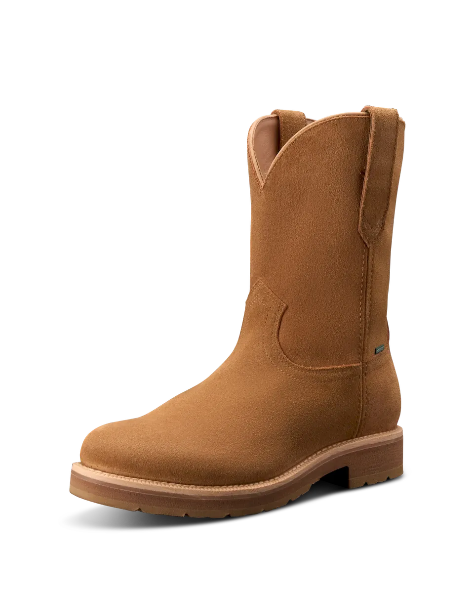 A timeless roper with modern guts, The Rugged Roper is the perfect boot for ranch work but also has the clean lines to wear around town or to the office. A dual-density cushioned outsole, our own energy-returning Total Energy Command (TEC) insole system, and a removable, cushioned footbed leave nothing on the table by way of comfort. Its light-lugged MuckOFF Tread is self-cleaning and oil and slip-resistant, and a breathable bootie and treated leathers help keep your feet dry. Here in water-resistant cowhide and roughout.