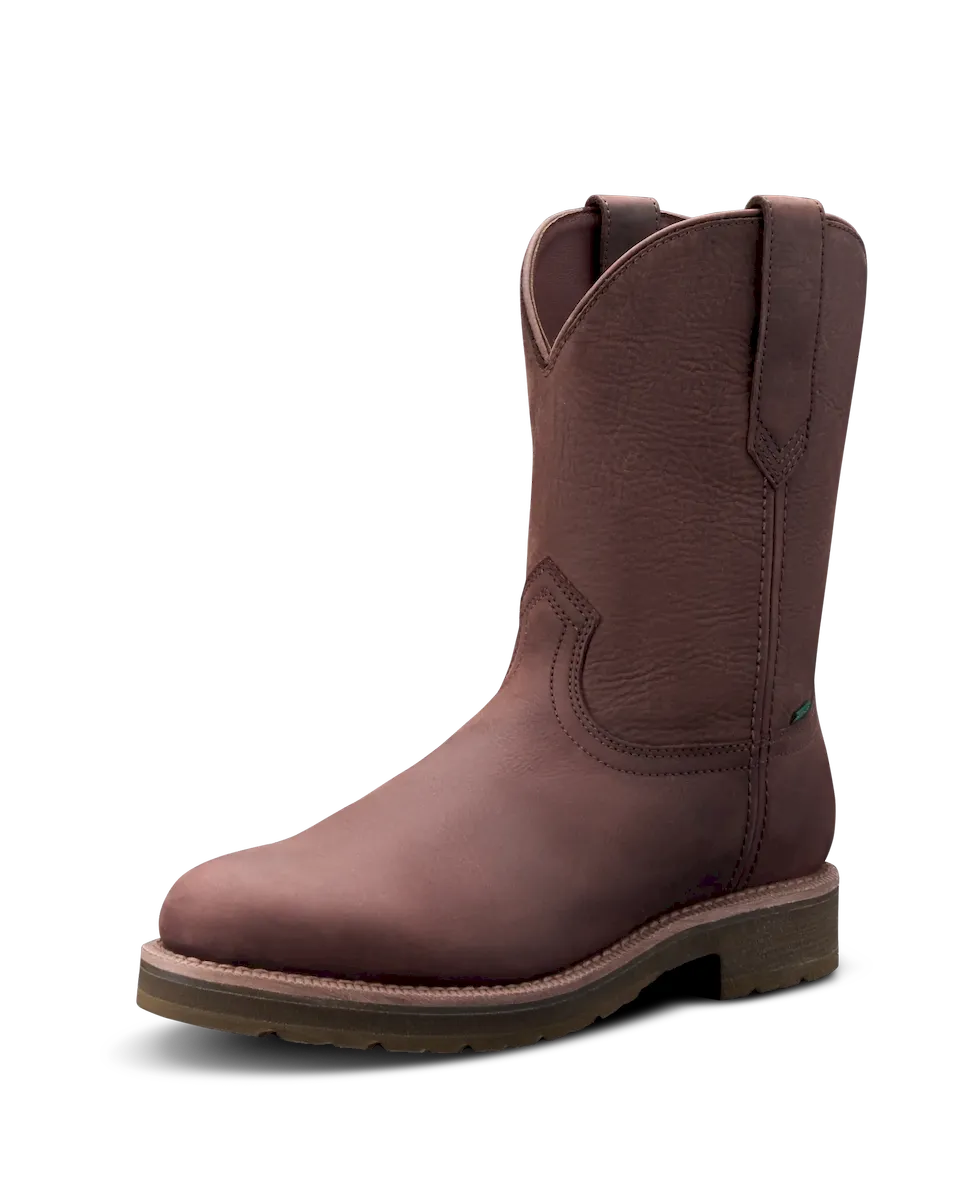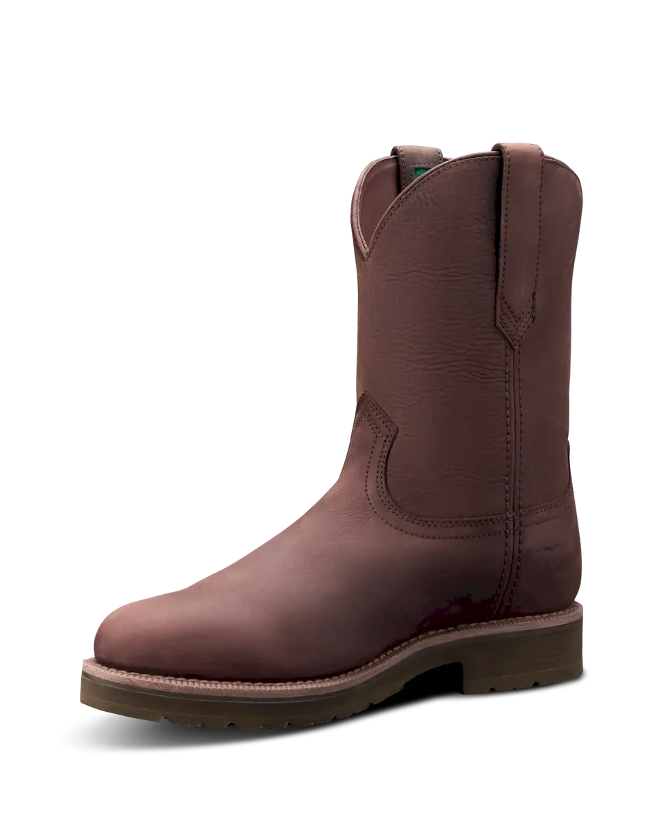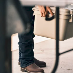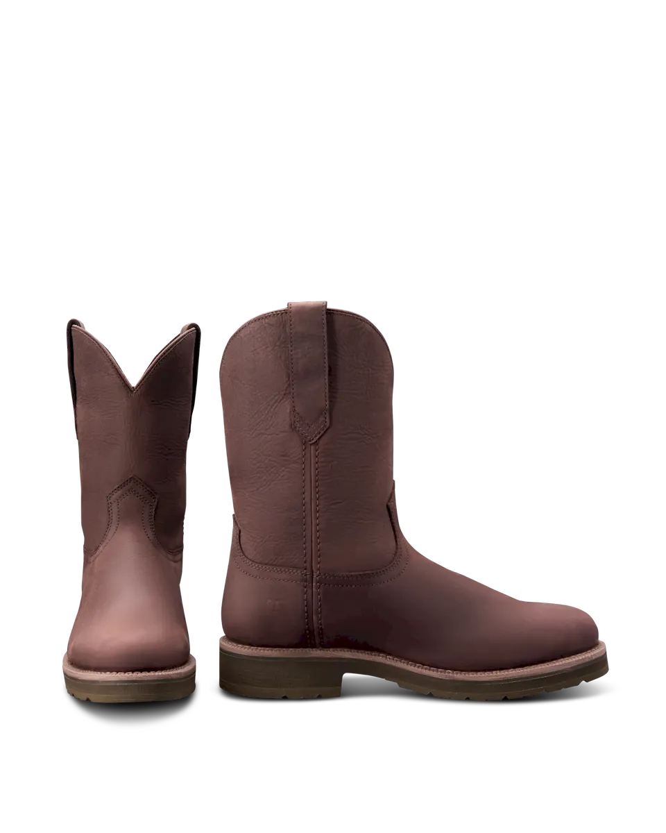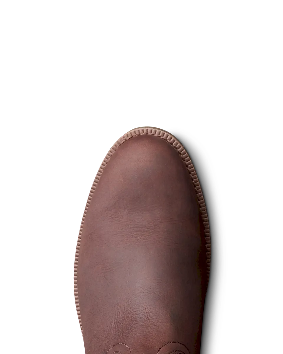 A timeless roper with modern guts, The Rugged Roper is the perfect boot for ranch work but also has the clean lines to wear around town or to the office. A dual-density cushioned outsole, our own energy-returning Total Energy Command (TEC) insole system, and a removable, cushioned footbed leave nothing on the table by way of comfort. Its light-lugged MuckOFF Tread is self-cleaning and oil and slip-resistant, and a breathable bootie and treated leathers help keep your feet dry. Here in water-resistant cowhide and roughout.